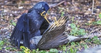 11月9日,英国莱斯特郡,72岁的野生动物摄影师Nigel Atkin用镜头捕捉到了一只雀隼霸道捕食寒鸦的精彩瞬间。 这场捕食大战发生在Nigel的后花园里,当时,他听到一阵骚动,便习惯性地端起相机前往,发现一只正在残暴捕食当中的雀隼,这个凶狠的捕食者对寒鸦发起猛攻,却不想遭到对方的强烈反抗,俩鸟陷入了一场大战,场面激烈堪比动作大片。打斗过程中,雀隼一度被寒鸦压倒在地处于劣势,为了防止寒鸦咬啄自己,它突然腾出一只爪子,直接捏住了寒鸦的长喙,让它无处下口,似乎在用行动表示“你给我闭嘴!”,画面爆笑十足。