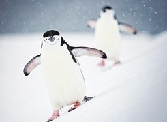 《海底总动员》摄影师Daniel Selmeczis在水下拍到一群引水鱼簇拥着大白鲨前进的场景,就像皮克斯动画电影《海底总动员》里一样,这头大白鲨似乎觉得鱼儿是它的朋友而非食物。(图一) 《怪物史瑞克》里的驴子有这么好笑?这只骡子一定发现了什么有趣的事!不过看它憨笑的样子与《怪物史瑞克》中的驴子真是颇有几分相似。Mick Gallagher花了数月在美国内华达州红岩峡谷中与一群骡子相处,终于这只骡子勇敢地跳出来对着镜头露出了它洁白的两行牙齿。(图二) 加拿大哈得逊湾,这只北极熊明显是看多了迪士尼影片《森林王子(The Jungle Book)》,像片中的大熊巴鲁一样忘记了一切烦恼在柳兰花田里翻滚嬉闹。(图三) 在南极洲的半月岛上演了现实版的《快乐的大脚》。39岁的摄影师David Merron近距离拍摄到了漫天飞雪中摇摇摆摆“舞蹈”的帽带企鹅。企鹅们在白雪覆盖的斜坡上滑行,仿佛在跳着欢快的踢踏舞。(图四)