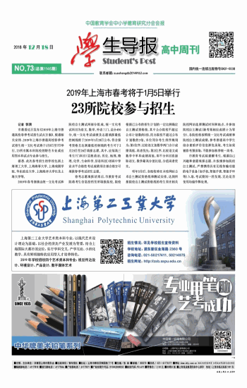 市教委近日发布《2019年上海市普通高校春季考试招生试点方案》。根据相关安排,2019年上海市普通高校春季考试招生统一文化考试将于1月5日至7日举行。23所市属本科院校的特色专业或应用型本科试点专业参与招生。 据悉,此次春考招生的学校包括上海理工大学、上海海事大学、上海戏剧学院、华东政法大学、上海海洋大学以及上海大学等。 2019年春考继续由统一文化考试和院校自主测试两部分组成。统一文化考试科目为语文、数学、外语三门,总分450分。统一文化考试成绩及志愿填报最低控制线将于2019年1月28日公布,符合报考资格且达到最低控制线的考生可于2月25日至26日填报志愿。其中,应届高三考生7门科目(思想政治、历史、地理、物理、化学、生命科学、信息科技)的高中学业水平合格性考试成绩须全部合格方可填报春季考试招生志愿。 春考志愿填报结束后,市教育考试院将考生信息投档至所填报院校。院校根据已公布的招生计划的一定比例确定自主测试资格线,其中公办院校不超过公布计划数的2倍,民办院校不超过公布计划数的3倍。末位同分考生排序规则为:第1位序,比较语文加数学两门合计成绩高低,高者优先;第2位序,比较语文或数学中单科成绩高低,即不分科目直接取语文、数学最高分值比较,分值高者优先。 明年3月1日,各院校将在本校网站公布自主测试资格线和测试安排。达到所报院校自主测试资格线的考生须在相关院校网站选择测试时间和地点,并参加院校自主测试(缺考则相应成绩计为零分)。各院校将按照统一文化考试成绩和院校自主测试成绩,参考普通高中学生综合素质评价信息择优录取。考生如果被春考预录取,不能参加秋季统一高考。 市教育考试院提醒考生,根据自己兴趣和意愿填报志愿,并按规参加院校自主测试。严禁携带具有无线传输功能的电子设备(如手机、智能手表、智能手环等)入场,考试期间一经发现,无论是否使用均做作弊处理。