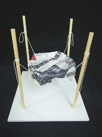 “蜘蛛丝具有独一无二的机械强度和弹性,这使得其成为人们所知道的最牢固材料。”这项研究的首席研究员、亚利桑那州立大学化学生物系教授杰弗瑞·亚格尔说,“这项研究代表了我们对于蛛丝潜在的机械性能最完整的理解。” 从负重上来讲,蜘蛛丝至少是钢琴线的5倍。蜘蛛丝是一种特殊的生物聚合物,与胶原(组成皮肤和骨头的材料)相关,但是蛛丝的结构要更加复杂。研究团队正在研究蛛丝的分子结构,以期获得生产从防弹背心到人工腱的材料。 亚格尔解释说,这个信息应该有助于提供一个丰富的仿生材料工程结构的蓝图,譬如合成纤维的精密材料工程,它可以创造更强大、更具延展性和更多的弹性材料。 他们还研究了蛛丝独一无二的“超收缩”性能,即蜘蛛能拖牵蛛丝编织成球体。当暴露于高湿度中,蜘蛛丝还能吸收水分,这种吸水行为能提高蜘蛛丝的收缩能力,因此,通过简单调整含水量,就可以对蛛丝的机械性能进行调节。 【DI竞技】 挑战:制作一个网, 然后承重弹珠。 要求:你们要制作一个网,网与圈的大小有关。用一个直径为13cm的圈做网,但圈与做成的网不能直接接触立柱和桌面,邮寄标签纸不能直接接触圈与立柱。弹珠释放时其高度必须在网的上方30cm处以自由落体的方式释放。 材料:4根吸管、4枚回形针、5张邮寄标签纸、1根50cm长的细绳、1张铝箔纸、2个高尔夫球、2个纸杯、1张报纸、10颗弹珠、1把卷尺(卷尺用来测量,不可以被破坏)。 【创想攻略】 制作一个“网”,固定在立柱上,承重弹珠。 “释放弹珠时,如低于30cm释放,则不计入成绩,弹珠也不能取回”,必须保证“网”的深度与面积,否则弹珠在30cm高处释放碰撞后会弹出。 释放高度不低于30cm,对承重装置的韧性有一定要求,需要分析判断材料的性能、形状以及数量,策略地进行材料选择。 “圈与做成的网不能直接接触立柱和桌面,邮寄标签纸不能直接接触圈与立柱。”说明必须通过间接方式连接。 使用报纸和圈来制作“网”装置。 用报纸包住大圈,报纸边缘折入大圈内。 用细绳来连接“网”装置和立柱,将细绳平均分为4段。 用回形针固定大圈和报纸。细绳穿过大圈与立柱相连。 完成测试,可以承重10颗弹珠。 【思维升级】 放弹珠过程中,如果网和立柱的连接断了,是否可以进行修补? 逆时针方向搓细绳,可以将它平均分成4根。 如何用回形针固定报纸和大圈? 【挑战延伸】 如果把圈换成直径更小的圈呢,你会有什么更好的创意吗? 【分享交流】 你有什么更好的点子吗?欢迎来稿分享给更多人,让大家为你点赞! 投稿邮箱:dishtech@126.com