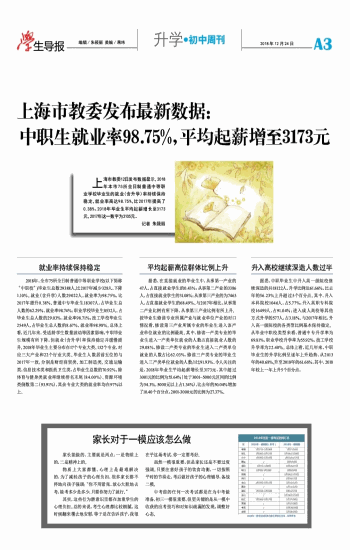 上海市教委发布最新数据:中职生就业率98.75%,平均起薪增至3173元