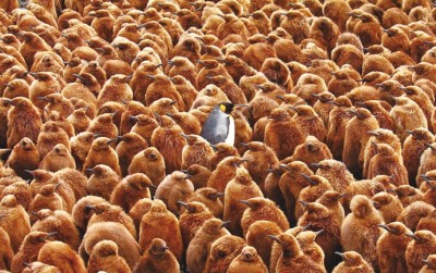 日前,2018年度英国生态学会摄影大赛评选结果揭晓,一张照片拍摄到一只孤独成年帝企鹅站在一群小企鹅中央,该照片获得此次摄影大赛总冠军。今年摄影大赛的主题是“捕捉生态”。