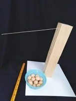 鸟类用干草、干树枝或泥巴搭建的巢,用来栖息和哺育幼鸟的。有许多鸟巢筑在十分隐蔽的地方,还加以伪装。鸟巢是鸟类在繁殖期间所建造的用于藏卵和雏鸟的结构,可使产下的卵聚集在一起,促进孵化;也可以保温以及保护亲鸟及雏、卵等不受天敌的伤害。 【DI挑战】 挑战:你们的任务是在细树枝上建一个鸟巢,树枝连在木桩上,但是距离木桩越远越好。 鸟巢里放入尽可能多的蛋(塑料鸡蛋)。 要求:你们有 5 分钟的时间运用你们的想象力建造鸟巢,试放鸡蛋,之后有1分钟向建好的鸟巢里放入鸡蛋得分。 材料:3枚回形针、1根30cm长的细绳、一块15cm×15cm的布料、4枚邮寄标签纸、1张A4纸、4根绒条、4根吸管、1个泡沫杯、10个塑料鸡蛋 【创想攻略】 放置鸡蛋前,鸟巢至少距离木桩25cm,放入鸡蛋后,鸟巢不能碰到木桩或地上,鸟巢只能接触树枝,看起来对重量和稳定性都有要求。不妨用手测试一下树枝的承重能力和韧性,发现树枝的韧性很强,用力往下拉是不会碰到木桩和地上的,这样的话就不用担心鸟巢的重量,而是要保证鸟巢的稳定性了,保证鸟巢可以稳定在树枝前端,不能旋转哦。 想要制作出能够盛装10个鸡蛋的鸟巢结构,可以用什么作主体材料呢?A4纸和杯子是优先考虑的哦! 尝试着用A4纸做个纸盒,并固定在树枝末端,你能想到什么方法吗?这里参考“竹篮”的结构灵感哦! 将A4纸沿长边对折,用标签纸将两头黏上,用两根扭扭棒穿透A4纸并固定在树枝的末端,发现“鸟巢”可以很稳定地悬挂着,调整鸟巢方向与树枝垂直,这样一个稳定的鸟巢就做好啦,测试一下距离吧。 测试距离为43cm,满足要求。 放入鸡蛋进行测试,发现装置可以很轻松地盛装鸡蛋。 一个个放入鸡蛋,尽量让鸡蛋左右对称地放置,很容易就能装下10个鸡蛋了。 第二部分,进行测试,发现鸟巢可以很稳定地盛装鸡蛋,而且也没有碰到木桩和地面。 如果鸟巢使用杯子作为主体材料的话,不妨也来制作哦!想一想如何把杯子固定在树枝末端呢? 用吸管和扭扭棒制作一个稳定的三角形结构,加大和杯子的接触面积,并用细绳捆绑住杯子,这样鸟巢就初步做好了,往里放置鸡蛋,但发现只能盛装7个鸡蛋,还需要加大鸟巢。 第二部分,一个个放入鸡蛋,杯子依然稳定地挂在树枝末端,没有旋转。 这个方法在鸟巢制作上显得稍微复杂一些,但在材料的创造性上会得分更高。 【思维升级】 利用A4纸制作容器,例如试试看制作成体积最大的或者长度最大的容器? 如何用扭扭棒来固定四根平行的吸管,形成一个方形? 用A4纸做个“围墙”增加杯子的容量,就可以轻松地盛装10个鸡蛋了。 【挑战延伸】 如果要求悬臂更长更高,你该怎么合理运用这些材料呢? 【分享交流】 亲爱的同学们,这道题你有什么更好的解题方案或创意思维吗?快来和小伙伴分享你的idea! 投稿邮箱:dishtech@126.com