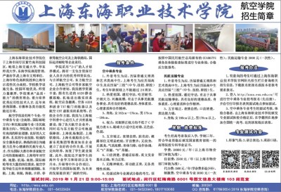 航空学院招生简章 上海东海职业技术学院位于上海市闵行区紫竹高科技园区,毗邻上海交通大学、华东师范大学。东海学院规范管理、严谨治学,是上海市文明单位、上海市特色高职院校和上海市示范性民办高校。学校教学设施完备,校园环境优美,师资力量雄厚。学校秉承“品质+能力”的教育理念,着力培养优秀应用性技术人才,近年来获得国赛、市赛和各类市级奖励近百项。 航空学院设有两个专业:空中乘务专业(含高铁、国际邮轮方向)和民航运输专业(含民航商务方向)。学院致力于培养具有高尚的职业道德、良好的人文素养、扎实的专业技能、较强的安全服务意识、熟练的语言沟通能力且身心健康的民航专业人才。作为国际大都市和多家航空公司的基地城市,上海每年对空乘、地勤、机场、高铁、国际邮轮等有大量的岗位需求。航空学院毕业生近年来相继被国航、东航、上航、南航、海航、吉祥、春秋等航空公司及上海铁路局、国际远洋邮轮等企业录用。 学院采用“2+1”的人才培养模式,拥有一支包含资深行业人员在内的优秀师资队伍,与吉祥航空公司、东方航空公司、上海航空公司等多家航空企业合作密切。我院教学资源丰富,拥有先进的A320静态模拟舱、机场进出港实训系统、航空应急撤离、空客A320和波音737舱门训练器以及航空CBT虚拟实训系统等。在校企合作方面,我院与上海航宇科普中心进行人才共育基地建设,除了各大航空企业外,同时还与东方航空公司地面保障部、上海机场集团、上海铁路局、上海长航船员公司、新东苑集团等数家知名企业建立了良好的合作关系,开展定向培养,拓宽了学生就业渠道。此外,我院还开展学生的海外专业学习和培训以及专升本、升硕等中外合作项目,开拓学生的国际视野,为未来的发展提供更广阔的空间。 报考条件 空中乘务专业 1、外省考生为应、历届普通文理类和艺术类高中生。上海考生为应历届高中生及应历届“三校”(中专、技校、职校)生。考生年龄原则上不能超过20周岁。 2、热爱祖国,遵纪守法,吃苦耐劳,开朗大方,兴趣高雅,有志于从事民航服务事业,具有良好的道德品质、身体素质、心理素质和合作精神。 3、身高:女162cm—174cm,男175cm—184cm。 4、视力:双眼矫正视力均不低于C字视力表0.5。眼球大小适中且对称,无色盲、色弱。 5、五官端正,表情自然,肤色好,裸露部位无明显疤痕;牙齿整齐;无纹身;无狐臭。气质高雅,形体匀称,动作协调,无“X”形腿、“O”形腿。 6、口齿清楚,普通话标准、英文发音基本正确;听力正常。 7、无精神病史,肝功能正常,无各类慢性疾病。 8、经面试和专业测试合格的考生,须按照中国民用航空总局颁布的CCAR67FS乘务员体格检查标准进行专业体检,合格后方能报考。 民航运输专业 1、外省考生为应、历届普通文理类和艺术类高中生。上海考生为应历届高中生及应历届“三校”(中专、技校、职校)生。 2、热爱祖国,遵纪守法,有志于从事民航运输事业,具有良好的道德品质、身体素质、心理素质和合作精神。 3、五官端正,表情自然;口齿清楚,表达能力强。 4、身高:女160cm以上,男170cm以上。 学制、收费标准 考生经高考录取后入学,学制三年,符合毕业资格后颁发国家教育部统一的高等院校专科毕业证书。 学费:18000元/年(以上海市物价部门审批为准)。 住宿费:2500元/年(以上海市物价部门审批为准)。 代办费:1500元/年(学杂费多退少补)。制服费:空中乘务专业3000元(一次性);民航运输专业2000元(一次性)。 报考办法 1、有意向的考生可通过上海东海职业技术学院官网阳光招生栏目查询相关招生信息,下载报名表报名或按本省报考要求报名。 2、登入http://zsxx.esu.edu.cn/可进行空中乘务专业校考报名(先注册),并自行打印报名表到面试地点参加面试。 3、空中乘务专业考生经面试考核、体检合格者,由上海东海职业技术学院颁发专业面试体检合格证后,在学籍所在地参加全国统一高考,达到录取线后录取。 专业测试内容 1、形象气质;2、语言表达;3、英语口语。 面试时间:2019年1月21日9:00-15:00 面试地点:闵行区虹梅南路6001号图文信息大楼南103阅览室 网址: http://esu.edu.cn 地址:上海市闵行区虹梅南路6001号 邮编:200241 电话:东海学院招生办: 021-64523424 航空学院陈老师: 021-64523940;18017103083 QQ咨询群: 617893654(2019东海学院空乘咨询)