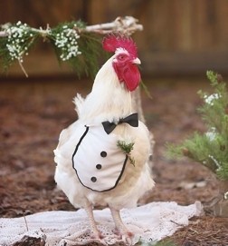 近日,居住在美国佐治亚州的女子艾琳·班克斯顿(Erin Bankston)在社交网络上分享了一组“鸡的婚礼照”,引起人们广泛关注。随后,知名度大涨的艾琳借此机会呼吁人们给予动物更多的人道关怀,获得一致好评。 照片中,鸡先生身着燕尾服,打着小领结,鸡太太身披婚纱,戴着珍珠项链,脚系吊袜带,在用木棍搭成的简易圣坛前,在花草簇拥中进行了一场甜蜜的婚礼。艾琳亲切地称它们为“五月花夫妇”。2017年5月,艾琳和她的家人在一个养鸡场救出了断腿的“五月花先生”,悉心照料至其恢复健康。两个月前,“五月花夫人”从一辆鸡车上掉下来,意外来到艾琳的农场。两只小东西见面后很快就变得密不可分,你侬我侬,一场婚礼势在必行。照片一出,艾琳收到了来自动物爱好者的积极反馈。知名度大增的她更加积极地呼吁人们给予动物更多的人道关怀。
