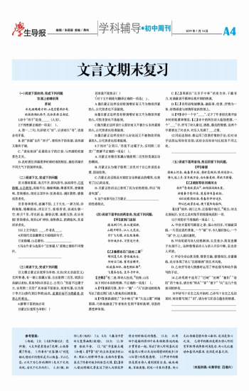 (一)阅读下面的诗,完成下列问题 饮湖上初晴后雨 苏轼 水光潋滟晴方好,山色空蒙雨亦奇。 欲把西湖比西子,淡妆浓抹总相宜。 1.诗中“西子”是指__________(人名)。 2.下列理解正确的一项是()。 A.第一、二句,先讲晴天“好”,后讲雨天“奇”,语意必有矛盾。 B.把“西湖”比作“西子”,表明西子的美丽,故西湖又称西子湖。 C.“淡妆浓抹”是描绘女子的打扮,与西湖的美丽景色无关。 D.此时抓住西湖夏季时晴时雨的特征,描绘西湖在不同天气下的别样风姿。 (二)阅读下文,完成下列问题 若夫霪雨霏霏,连月不开,阴风怒号,浊浪排空;日星隐曜,山岳潜形;商旅不行,樯倾楫摧;薄暮冥冥,虎啸猿啼。登斯楼也,则有去国怀乡,忧谗畏讥,满目萧然,感极而悲者矣。 至若春和景明,波澜不惊,上下天光,一碧万顷;沙鸥翔集,锦鳞游泳;岸芷汀兰,郁郁青青。而或长烟一空,皓月千里,浮光跃金,静影沉璧,渔歌互答,此乐何极!登斯楼也,则有心旷神怡,宠辱偕忘,把酒临风,其喜洋洋者矣。 3.以上文字选自_________,作者是_________。 4.用现代汉语翻释文中画线的句子。 日星隐曜,山岳潜形;_____________________________________ 5.写出作者与选段中“迁客骚人”览物之情的不同情怀。 ____________________________________________________________ (三)阅读下文,完成下列问题 吕文穆公蒙正以宽厚为宰相,太宗(宋太宗赵匡义)尤所眷遇。有一朝士家藏古鉴,自言能照二百里,欲因公弟献以求知。其弟伺间从容言之,公笑曰:“吾面不过碟子大,安用照二百里?”其弟遂不复敢言。闻者叹服,以为贤于李卫公(唐代贤臣李靖)远矣。盖寡好而不为物累者,昔贤之所难也。 6.解释下面的加点词 吕蒙正以宽厚为宰相( ) 其弟遂不复敢言( ) 7.对于文中画线句翻译正确的一项是()。 A.像吕蒙正这样没有特别嗜好而又不为物欲所累的人,古代贤者也不易做到。 B.像吕蒙正这样没有特别嗜好而又不为物欲所累的人,可惜圣贤也不易做到。 C.像吕蒙正这样没什么爱好而又不被什么东西累到的人,古代贤者也很难做到。 D.像吕蒙正这样没有什么好处而又不被物欲所拖累的人,古代贤者也很难做到。 8.下列对“公笑曰:‘吾面不过碟子大,安用照二百里?’”理解不正确的一项是( )。 A.吕蒙正对朝官家藏古镜能照二百里的荒诞言论的嘲讽。 B.吕蒙正认为镜子能照二百里对于自己来说没必要,因而拒绝。 C.吕蒙正此话既是对朝官言论和做法的嘲笑,也表明了自己的态度。 D.吕蒙正的语言已表明了其为官的准则,所以“闻者叹服”。 9.这个故事写出了吕蒙正_______________________________________的性格特点。 (四)阅读下面李白的两首诗,完成下列问题。 【甲】渡荆门送别 渡远荆门外,来从楚国游。 山随平野尽,江入大荒流。 月下飞天镜,云生结海楼。 仍怜故乡水,万里送行舟。 【乙】鲁郡东石门送杜二甫① 醉别复几日,登临遍池台。 何时石门路,重有金樽开。 秋波落泗水,海色明徂徕②。 飞蓬各自远,且尽手中杯。 【注释】①杜二甫:即诗人杜甫。②徂徕:山名 10.下列对本诗的理解,不正确的一项是( )。 A.【甲】颔联写景,其中一“随”一“入”以游动的视角写出了渡过荆门进入楚地的壮阔景象。 B.【甲】颈联描绘了“水中映月”和“天边云霞”两幅图画,巧妙地融进了作者初次见到平原时新鲜、欣喜的感受和体验。 C.【乙】尾联以“且尽手中杯”结束全诗,干脆有力,充满豪放不羁和乐观开朗的情调。 D.【乙】诗用语绚丽飘逸,融叙事、绘景、抒情为一体,诗情画意与深情厚谊跃然纸上。 11.【甲】诗中一个字“_______”,记下了作者初次离开故乡时的观感和情思;【乙】诗中的两位诗人临别把酒,一个“_______”字,抒写了诗人豪迈、洒脱、豁达的情感。这两个字都表达了对故乡、对友人充满了_______之情。 12.同是送别诗,都运用了借景抒情的手法,但对该手法的运用却有差别,试结合具体诗句比较其不同之处。 _______________________________________________________________ (五)阅读下面两首诗,然后回答下列问题。 【甲】春望 国破山河在,城春草木深。感时花溅泪,恨别鸟惊心。 烽火连三月,家书抵万金。白头搔更短,浑欲不胜簪。 【乙】闻官军收河南河北 剑外①忽传收蓟北②,初闻涕泪满衣裳。 却看妻子愁何在,漫卷诗书喜欲狂。 白日放歌须纵酒,青春作伴好还乡。 即从巴峡穿巫峡,便下襄阳向洛阳。 【注】①剑外:剑门之外,泛指蜀中地区。②蓟北:河北北部地区,安史之乱时叛军的根据地范阳一带。 13.下列赏析不准确的一项是( )。 A.甲诗开篇即写眼前之景:虽山河仍在,可城破国陷,一片荒凉衰朽景象。一个“破”字,令人触目惊心;一个“深”字,让人满目凄然。 B.甲诗尾联写诗人忧愁渐深,头发愈少,简直连簪子也别不上。这种愁情是诗人与亲人书信中断,思念亲人所致。 C.甲诗全诗由景及情,情景交融,感情深沉,含蓄凝练,充分体现了诗人“沉郁顿挫”的艺术风格。 D.乙诗抒写诗人情感时运用了神态描写和动作描写的手法。 14.乙诗尾联中连用了“巴峡”“巫峡”“襄阳”“洛阳”四个地名,请分析“即从”“穿”“便下”“向”这几个连接词的妙处____________________________________ 15.甲诗写于安史之乱开始时,乙诗写于安史之乱结束时,两诗都写到了“泪”,请分析它们各自蕴含的情感。 _______________________________________________________________ 参考答案: 1.西施; 2.D; 3.《岳阳楼记》