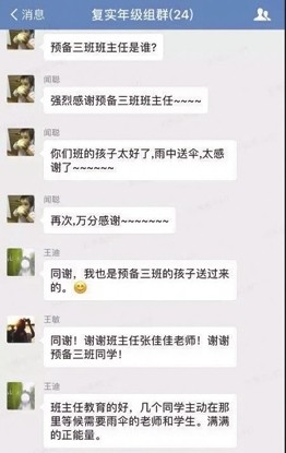 近日,在复旦实验中学的校园里流传着一个暖心的故事:有天午饭后,一批老师被阻挡在了食堂门口,看着近在咫尺的办公楼和瓢泼的倾盆大雨,想着中午要批改的两个班100本随堂作业,还要找学 生个别谈话——一筹莫展。学生们并没有视而不见听而不闻,而是举起伞护送起老师来。这样的举动如同一股暖流流进老师的心谷里。 记者 朱筱丽 暖心暖意: “老师,我们送您回去” 当天的雨大。吃好午饭的学生陆陆续续开始离开食堂,返回教室。但大雨却挡住了老师们去办公室的路。预备(3)班刘博雅和其他几位同学,主动提出要把老师送回办公室。 送完一批老师,这群学生发现,还有很多老师被雨滞留在食堂门口。于是,他们再次掉转身头,继续为老师撑伞,把老师从食堂摆渡回办公楼。一趟又一趟,把一批又一批老师送回了办公楼。 一把伞撑起了一名学生和一名老师,成了这阴雨潮湿的校园里最美的风景。即便学生们的鞋子多半已经被打湿,裤腿上也沾了雨水,但他们的张张小脸上却绽放着自豪的笑容。 师生们共享雨伞下一片晴空的温暖情形,既打动了老师也感动了校长。当天中午,校长特地叮嘱广播台,在全校公开表扬了这件事,传播师生互爱的正能量。在之后的预备年级全体家长会上,学校又公开表扬了这件事,传播学校的育人文化。 于是,在之后阴雨连绵的日子里,复旦实验中学的校园里,经常会出现师生互相撑伞的景象,不少学生甚至等在食堂门口,等着为老师撑伞,送老师回办公室。 网络争议: 学生该不该给老师服务? 三年前,某学校的学生在烈日之下为自己的老师打伞,照片经网上传播之后,引发舆论一片。“打伞事件”的争议之处在于:学生该不该给老师服务? 而这同样是一个“为老师打伞”的故事,却有着温馨的结局。那是因为:孩子们自发为老师打伞,暖了园丁们的心,学校和老师们为孩子们的行为点赞,并且在全校加以传播,暖了学生们的心。师生关系间的温度,因为这件小事的“放大”而不断升温,增强了师生关系的黏度,提升了校园的温度。 “给老师打伞”这样的举动,不应该成为师生关系的隔阂。恰恰是复旦实验中学孩子们在雨幕中自发的举动,为这个冬日增添了几分暖意。 我们该为孩子们“为老师打伞”的善举点赞,我们也应为校长“广而告之”的决定鼓掌:因为我们的校园需要这样的正能量,我们的师生关系需要这样的温情——打破“教育供需”的世俗尺度,我们眼中看到的,该是孩子们纯真的眼光和令人动容的师生情谊。