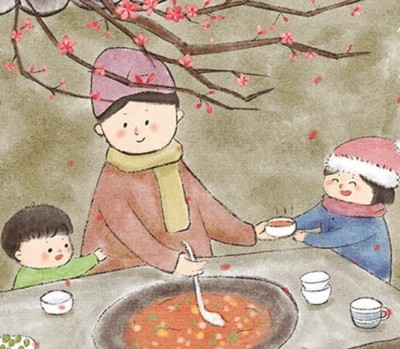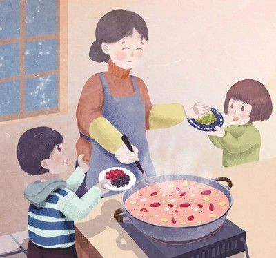 《腊节》 【北齐】魏收 凝寒迫清祀,有酒宴嘉平。 宿心何所道,藉此慰中情。 赏析:诗人在寒冬与众人共祭诸神时有感而发,短短20个字,便写出了寒凝大地、数九隆冬时节,人们在桌上摆上酒肉以祭祀百神、感谢百神的福佑,抒发出久已宿居于心中的敬神之情。 《腊日》 【唐】杜甫 腊日常年暖尚遥,今年腊日冻全消。 侵凌雪色还萱草,漏泄春光有柳条。 纵酒欲谋良夜醉,还家初散紫宸朝。 口脂面药随恩泽,翠管银罂下九霄。 赏析:往年的腊日天气还很冷,温暖离人还很遥远。而当年腊日气候温和,冰冻全消。诗人高兴之余准备辞朝还家,纵酒狂饮欢度良宵,但此时此刻,又因感念皇帝对他的恩泽,不能随便离开,只好在异乡再度过一个“腊八节”了。 《腊八日雪参议林郎中有诗因次韵》 【宋】喻良能 玉树参差见,银花子细看。 淖糜分腊序,圆炭度朝寒。 冉冉头新白,匆匆岁又残。 聊凭一杯醉,忍把两眉攒。 赏析:腊八很冷,过年了,如果你很愁,那就喝几杯酒,酒可暖身,亦可消愁。 《南歌子黄州腊八日饮怀民小阁》 【宋】苏轼 卫霍元勋后,韦平外族贤。 吹笙只合在缑山。 闲驾彩鸾归去、趁新年。 烘暖烧香阁,轻寒浴佛天。 他时一醉画堂前。 莫忘故人憔悴、老江边。 赏析:乌台诗案之后,苏轼被贬黄州。从繁华到寂寥,正经历着人生最消沉的一段日子。人得意的时候,节日是锦上添花的欢乐;人失意的时候,节日就有点复杂了。这个腊八节,苏东坡借过节的由头,到同样被贬到黄州的朋友张怀民处小饮。 《行香子·腊八日与洪仲简溪行其夜雪作》 【宋】汪莘 野店残冬。绿酒春浓。 念如今,此意谁同。 溪光不尽,山翠无穷。 有几枝梅,几竿竹,几株松。 篮举乘兴,薄暮疏钟。 望孤村、斜日匆匆。 夜窗雪阵,晓枕云峰。 便拥渔蓑,顶渔笠,作渔翁。 赏析:小店暂歇,春酒一杯,沿途的溪山间不时夹带着几枝幽梅、几竿孤竹、几株苍松,清旷疏朗之气宜人。暮宿孤村,又逢寒风飘絮,夜雪扑窗。天明后带上渔具,独钓寒江雪,有胸中万虑俱息之感。 《腊八危家饷粥有感》 【宋】赵万年 襄阳城外涨胡尘,矢石丛中未死身。 不为主人供粥饷,争知腊八是今辰。 赏析:这首诗充满了悲凉感,800多年前隆冬时节,襄阳保卫战正酣之际,也正值腊八节。南宋抗金将领赵万年在这天赋诗,和襄阳军民度过了一个难忘的腊八节,诗中写道,如果不是喝到了粥,都不知今日是腊八! 《十二月八日步至西村》 【宋】陆游 腊月风和意已春,时因散策过吾邻。 草烟漠漠柴门里,牛迹重重野水滨。 多病所须惟药物,差科未动是闲人。 今朝佛粥交相馈,更觉江村节物新。 赏析:陆游这首诗,读起来能够让人们在隆冬腊月感受到风和日丽的春意。特别是柴门里的漠漠草烟与河边牛群经过的痕迹,加上人们互赠、食用腊八粥的情景,犹如在人们面前播放一部民俗风情短片,给人带来一种清新的气息。 《腊八》 【清】夏仁虎 腊八家家煮粥多,大臣特派到雍和。 圣慈亦是当今佛,进奉熬成第二锅。 赏析:到了清代,朝廷腊八赐粥风俗更盛,规模也越加庞大。这首诗短短几句,便使得腊八这天家家户户煮食腊八粥,皇帝到雍和宫煮粥奉佛并赐诸王、大臣、宫妃等情景跃然纸上,生动地再现了当时万头攒动、人涌如潮的热闹场面。