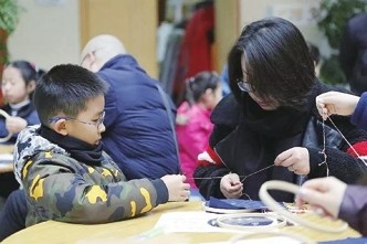 记者 曹莹 小寒作为二十四节气的倒数第二个节气,意味着一年最冷的时候到了。1月5日(星期六)一场以传统文化二十四节气为主题的“嗨皮一家亲子营”双休日广场活动,吸引了15组家庭冒着寒冷的冬雨前来参加。大家要在现场亲子接力,完成一幅小寒主题的鲁绣作品。 只见虹口区青少年活动中心的一楼大厅里,以家庭为单位,大家都忙着穿针引线、绷紧梆架、拆分绣线、研究针法。羞涩的男孩子第一次拿起绣花针,在妈妈的指导下,有模有样地走起了“回针法”、“直针法”;爸爸也耐起性子,露出了难得一见的温柔一面,和女儿一起做起了针线活;细心的女孩子小心翼翼地抽出绣线,手拿绣花梆架,体验起了传说中的女红,这些温馨的场面组成了小寒天里最美的画面。 虹口区青少年活动中心的老师介绍说,中国优秀传统文化的魅力就在于能给人们带来精神的滋养,一个半小时的广场活动,时间虽有限,但传递给孩子及其家庭的国学文化滋养是实在而厚重的!