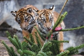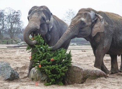 圣诞树节后被送进动物园 小动物大快朵颐美滋滋