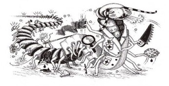 作者:[意]奎多·斯卡尔多利 出版社:人民文学出版社、天天出版社 “有非法入侵者!有非法入侵者!” 警报声沿着管道响起,往下传入沟槽,通过墙上的各种缝隙和开口,被地上的水坑反弹,进入拐角处,时而滑行,时而盘旋,时而慢速,时而快速,最终进入到公寓主管乔治·W.布拉特的耳朵里。 …… “亲爱的居民们,你们已经知道发生了什么。一只未经许可的热血动物占领了我们这幢公寓楼的东侧。斯莱已经秘密地研究过他的排泄物,可以确定,这个动物是一只狗。” 话音刚落,底下就传来了嗡嗡声、呼呼声、隆隆声、沙沙声、瑟瑟声……各种声音此起彼伏。 “请安静!请安静!”乔治·W.布拉特不得不连续敲打小锤子,“大家注意,我现在不是在强调我们所处的危险处境和所要冒的风险,也不是在和大家探讨这样一个四足动物会给我们这个稳定的公寓体系带来什么破坏……” 此刻,底下的昆虫们发出咕哝的赞同声,可以看到大大小小的脑袋上上下下地晃动着表示同意。 “现在最紧急的是……最紧急的是……安静!亲爱的女士们、先生们,现在最紧急的是需要拿出一个解决方案。在这样的情况下,大家更要保持理智。” …… 轮到本·斯图德迈尔时,他毫不犹豫地提出了战争:“战争是唯一的解决方式。” 金博尔先生(他刚在家附近参加完高尔夫球比赛)用肯定的语气说道:“狗是一种相当粗鲁的动物,他们不会进行理性思考。如果发动战争的话,还没有开始,公寓楼里的昆虫们就已经输了。” 这时,乔治·W.布拉特苦恼地说道:“事实是,我们无法强迫他遵守规章制度。” “也无法违背他的意愿强迫他离开。”莫伦特斯补充道。 “如果我们不采取战争手段,自然无法打败他。”本·斯图德迈尔回应道。 六只昆虫面面相觑,一张无形的气馁之网笼罩着他们,在很长一段时间里,没有人打破这份寂静。 “加油!”蟑螂主管最后的这句像是在宣判,“该出发了!” …… 昆虫们列着紧凑的队伍,轻声地前进。大门边的山姆此刻就像房间里纠结着的一块地毯。 “你们看,”本信心满满地小声说道,“他马上就要得到应有的教训了!” 保卫队队长本(公寓武装部队临时总指挥)迈着矫健而坚定的步子,安排好需要在不同时间作战的队伍:步兵战队如罗马军团一般,组成长方形阵营,慢慢地向敌人方向前进;空军战队将旧电线作为发射台,在天花板上做好了准备,蚊子泽波和苍蝇斯莱正认真地清点自己的手下;蜘蛛们把蜘蛛网悬挂在墙边一个摇摇欲坠的托架边上,以蝎子布罗提根为首的突击队则沿着墙边的踢脚线潜伏着。 一切准备就绪。乔治·W.布拉特和代表团成员为观察员,站在蜘蛛的对面——托架的另一边上。本看着乔治·W.布拉特,等着他下达命令。 …… 角落里,不知所措的总指挥本·斯图德迈尔目睹着这场灾难,忧心忡忡。 山姆怒火中烧,报复的欲望弥漫全身。他摆动了几下尾巴和大腿,又用力摇了摇头和背,嘴里不停地吐着东西,撕咬着,把飞行昆虫们往各个方向甩去,直到确定自己已经击退了他们的进攻。 最后,他气喘吁吁地站在弥漫着鞭炮味的房屋中间,往四周看去。步兵战队已经缴械投降,他们躲在一个角落里,好像一块巨大的灰尘。 大部分空军队员被甩到了墙上或天花板上,也有些被甩在地上,更有不幸者,直接进了山姆的肚子里。 斯莱不解地摇着头,泽波正努力寻找他破碎的翅膀,谁也不知道他的翅膀被打落到了哪里。 蜘蛛们早早逃离了战场,悲伤地看着自己精心编织的网。而由本·斯图德迈尔亲自率领、压轴登场、大名鼎鼎的突击队,最终也没能等到机会发动进攻。总之,这是公寓历史上最糟糕的一次集体行动。 此时此刻,本多么希望脚下的地板能裂开一道缝,这样他就能永远地躲在地底下了。 ……咚咚。 本·斯图德迈尔小心翼翼地敲响了办公室的门。乔治·W.布拉特透过玻璃依稀看到一只黑色的昆虫,但是没认出是谁。 “请进。”乔治·W.布拉特疲惫地说。 “我……我可以进来吗?” 乔治·W.布拉特瞪着他黑色的大眼睛,叫了起来:“你真是把我吓了一跳!你真像那个无能的本·斯图德迈尔!如果你真的是本,你就别想安然无恙地从我的办公室里走出去!” 本一半的身子躲在半掩的门后面:“不是我的错,乔治·W……是蚂蚁,那些笨蛋……” “你的进攻计划,”乔治·W.布拉特怒吼道,“简直就是愚蠢至极!” “然后步兵战队……”本拙劣地解释道,“他们害怕了,那些胆小鬼!” “本,我再和你说一遍,这是一个愚蠢的计划!”乔治·W.布拉特重申道,但他突然意识到这样说的后果,“而我是最傻的一个,傻到相信这个计划会成功!” 说完这句话后,乔治·W.布拉特重重地倒在他的液态橡胶片沙发上,把头埋在腿间,嘟哝着:“我怎么会相信这样一个计划?怎么会呢?” 本终于鼓足勇气走进了办公室:“好了,你也别自责了。我们所做的一切,都是为了大家。” “你真的这么认为,本?” “是的,乔治·W。当时大家都是赞同这个计划的,难道不是吗?” 乔治·W.布拉特没有回答。 “你听我说,我找到了一样东西,想让你看一下……” “什么东西?” “太重了,我搬不过来……我在战场的一个角落里发现的。” “我一点儿都不想回那个战场,本。至少现在不想。” “但是我一定要带你去看,对不住了,你一定得看看那样东西。” “是什么?” “我觉得那是一样特别重要的东西。” “好吧。”乔治·W.布拉特叹了口