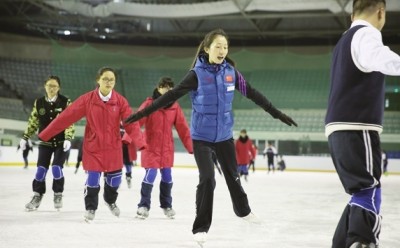 说明:知名运动员杨阳担任教练,同学们跟着教练在坚硬的冰上用脚尖勾勒出柔美的圈圈,脸上也洋溢着幸福的笑容。