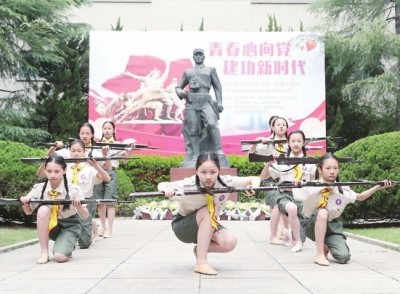 快闪拼字“致敬英雄”、寻找英雄红色定向活动、情景剧演绎英雄故事……在清明节期间,上海各小学纷纷组织学生开展主题教育活动,通过多种形式,缅怀革命先烈,弘扬民族精神,传承红色基因。 记者 陈思焙 红色定向:寻找英雄足迹 清明前夕,2019年徐汇区未成年人“清明祭英烈”活动启动仪式在龙华烈士陵园举行。同学们快闪拼成“致敬英雄”四个壮观的大字,以特殊方式向革命英雄致敬。 同学们在“英雄荣耀”寻找英雄红色定向活动中,沿着解放上海、少年英雄、龙华碑苑、且为忠魂舞等预先设置的活动地点,齐心协力完成“解放精神永不忘、少年英雄知多少、英雄诗抄伴你行、声声诗文颂忠魂、探索遗址觅英雄、以花寄情缅英烈、不忘初心壮志酬”等任务,身临其境接受爱国主义教育,培养敢于担当、勇于奉献精神。 同学们还带来了精彩的诗朗诵《你是一本读不完的书》和合唱《国家》,重温红色革命经典历史,回顾中华儿女浴血奋战的峥嵘岁月,用诗歌祭奠烈士英灵,用诗歌歌颂伟大祖国,表达了未成年人铭记革命历史、崇尚革命英雄、继承革命事业、增强国家观念和爱国情感的自信和勇气。 情景剧:缅怀革命先烈 日前,晋元附校的少先队员们来到位于晋元高级中学的谢晋元将军铜像前,用情景剧和诗朗诵展现了谢晋元将军率领“八百壮士”死守上海四行仓库的英雄事迹,缅怀英烈,铭记谢晋元将军的革命精神。谢晋元之子谢继民老先生也参加了活动,并向少先队员赠书,鼓励青少年学习烈士精神,内化爱国之情,坚定报国之志。 东门小学的师生们也用《木兰辞》情景剧和英雄故事唱诵在2019年崇明区中小学“清明祭英烈”主题教育活动上,表达了感怀革命先辈、继承先烈遗志、携手共筑中国梦的情怀。 作为“我的中国梦”主题教育实践活动之一,崇明区在广泛开展“清明祭英烈”线下活动之余,同时开展了“我们的节日·清明”未成年人网上祭英烈活动,清明节期间,同学们在网上向革命先烈“鞠躬”、“献花”、“点蜡烛”,用这种环保的方式缅怀革命先烈,争做新时代好少年。