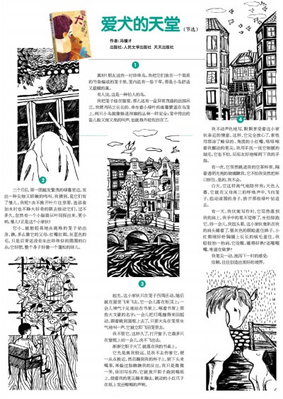 作者:冯骥才 出版社:人民文学出版社 天天出版社 1 真好!朋友送我一对珍珠鸟。我把它们放在一个简易的竹条编成的笼子里,笼内还有一卷干草,那是小鸟舒适又温暖的巢。 有人说,这是一种怕人的鸟。 我把笼子挂在窗前。那儿还有一盆异常茂盛的法国吊兰。我便用吊兰长长的、串生着小绿叶的垂蔓蒙盖在鸟笼上,两只小鸟就像躲进深幽的丛林一样安全;笼中传出的笛儿般又细又亮的叫声,也就格外轻松自在了。 2 三个月后,那一团越发繁茂的绿蔓里边,发出一种尖细又娇嫩的鸣叫。我猜到,是它们有了雏儿。我呢?决不掀开叶片往里看,连添食加水时也不睁大好奇的眼去惊动它们。过不多久,忽然有一个小脑袋从叶间探出来。更小哟,雏儿!正是这个小家伙! 它小,就能轻易地由疏格的笼子钻出身。瞧,多么像它的父母:红嘴红脚,灰蓝色的毛,只是后背还没有生出珍珠似的圆圆的白点;它好肥,整个身子好像一个蓬松的球儿。 3 起先,这小家伙只在笼子四周活动,随后就在屋里飞来飞去。它一会儿落在柜顶上;一会儿神气十足地站在书架上,啄着书背上那些大文豪的名字;一会儿把灯绳撞得来回摇动,跟着跳到画框上去了。只要大鸟在笼里生气地叫一声,它就立即飞回笼里去。 我不管它。这样久了,打开窗子,它最多只在窗框上站一会儿,决不飞出去。 渐渐它胆子大了,就落在我的书桌上。 它先是离我较远,见我不去伤害它,便一点点挨近,然后蹦到我的杯子上,俯下头来喝茶,再偏过脸瞧瞧我的反应。我只是微微一笑,依旧写东西。它就放开胆子跑到稿纸上,绕着我的笔尖蹦来蹦去,跳动的小红爪子在纸上发出嚓嚓的声响。 4 我不动声色地写,默默享受着这小家伙亲近的情意。这样,它完全放心了,索性用那涂了蜡似的、角质的小红嘴,嗒嗒啄着我颤动的笔尖。我用手抚一抚它细腻的绒毛,它也不怕,反而友好地啄两下我的手指。 有一次,它居然跳进我的空茶杯里,隔着透明光亮的玻璃瞅我。它不怕我突然把杯口捂住。是的,我不会。 白天,它这样淘气地陪伴我;天色入暮,它就在父母再三的呼唤声中,飞向笼子,扭动滚圆的身子,挤开那些绿叶钻进去。 有一天,我伏案写作时,它居然落到我的肩上。我手中的笔不觉停了,生怕惊跑它。待一会儿,我扭头看,这小家伙竟趴在我的肩头睡着了,银灰色的眼睑盖住眸子,小红脚刚好给胸脯上长长的绒毛盖住。我轻轻抬一抬肩,它没醒,睡得好熟!还咂咂嘴,难道在做梦? 我笔尖一动,流泻下一时的感受: 信赖,往往创造出美好的境界。