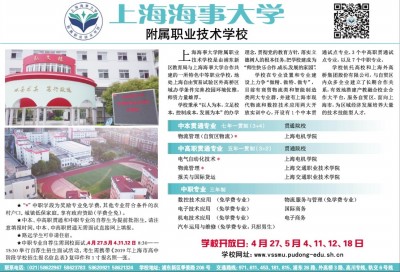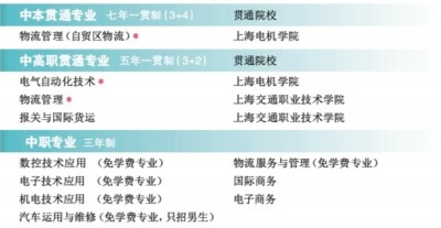 上海海事大学附属职业技术学校是由浦东新区教育局与上海海事大学合作共建的一所特色中等职业学校,地处上海自由贸易试验区外高桥区域,办学条件完善,校园环境优雅,师资力量雄厚。 学校秉承“以人为本,立足校本,控制成本,发展为本”的办学理念,贯彻党的教育方针,落实立德树人的根本任务,把学校建成为“师生快乐合作、成长、发展的家园”。 学校在专业设置和专业建设上力争“做精、做特、做专”,目前有商贸物流类和智能制造类两大专业群,并建有上海市现代物流和数控技术应用两大开放实训中心,开设有1个中本贯通试点专业、3个中高职贯通试点专业,以及7个中职专业。 学校依托高校和上海外高桥集团股份有限公司,与自贸区内众多企业建立了长期合作关系,有效地搭建产教融合校企合作大平台,服务自贸区、面向上海市,为区域经济发展培养大量的技术技能型人才。 ★“*”中职学段为奖励专业免学费,其他专业符合条件的农村户口,城镇低保家庭,享有政府资助(学费全免)。 ★中本、中高职贯通和中职专业的自荐生为提前批招生,请注意填报时间,中本、中高职贯通无需面试直接网上填报。 ★路远学生可申请住宿。 ★中职专业自荐生需到校面试,4月27、5月4、11、12日 8:30——15:30举行自荐生招生面试活动,考生需携带《2019年上海市高中阶段学校招生报名信息表》复印件和1寸报名照一张。 学校开放日:4月27、5月4、11、12、18日 学校网址:www.vssmu.pudong-edu.sh.cn 联系电话:(021)58622967 58623783 58620921 58621324 学校地址:浦东新区季景路206号 交通路线:971、611、453、181、815、浦东26路、外高桥3路、高川专线、轨交6号线