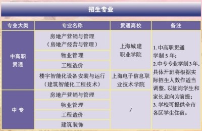 上海市房地产学校隶属于上海市住房和城乡建设管理委员会,是上海市一所现代化标志性中等职业技术学校,是上海市现代企业教育培训中心建设试点单位。曾荣获上海市职业教育先进单位、上海市平安示范单位、全国建设系统精神文明建设先进单位等称号,连续二十年获“上海市文明单位”称号。 联系方式 学校南楼 A301 招生就业办 学校地址 上海市青浦区高泾路588号(靠近国家会展中心) 交通方式 地铁2号线徐泾东站8号出口换乘徐泾5路(高泾路方向)或706路,至高泾路河泾港路(房地产学校)站/地铁9号线九亭站3号出口换乘706路,至高泾路河泾港路(房地产学校)站。 欢迎参加学校5月12日、5月18日的职业体验日活动 招生咨询: 59889077 18721878673 韩老师 18817246709 李老师 13651913636 曹老师 邮政编号: 201702