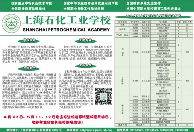 国家重点中等职业技术学校 国家中等职业教育改革发展示范学校 全国教育系统先进集体 全国职业教育先进单位 全国职业指导工作先进学校 全国中等职业学校德育工作先进集体 学校简介 学校创办于1978年,历经四十年精心耕耘,已发展成为一所“教育理念先进、教学质量上乘、办学特色鲜明”的国家重点中等职业学校及国家中等职业教育改革发展示范学校,赢得社会各界高度赞誉。学校占地面积150亩,建筑面积8.7万平方米,享有“花园学校”的美誉。 办学特色 学校不断深化产教融合、校企合作,积极推进国际化办学,成效显著。主动与德国丽莎-迈特纳学校和德国东北部化工职业培训中心合作,以德国联邦法令对化工操作员的规定要求为蓝本,创新本土化的双元制化工职业教育模式,构建工匠精神的摇篮。携手德国AHK(上海),引进AHK国际职业资格证书,建立全国性“AHK中德化工职业培训基地”,打造职业教育的高地;一方面,本土化双元职教标准辐射全国多个省市,展现国家示范校的引领作用;另一方面,用国际一流标准为国内外知名企业培养高素质的技术技能人才,实现学校教育与区域经济的一体化和谐发展。 开设专业 化学工程与工艺(中职-应用型本科)、应用化工技术(中高职贯通)、物流管理(中高职贯通)、化学工艺、环境监测技术、机电技术应用、数控技术应用、汽车电子技术应用、计算机应用、物流服务与管理、会计、商务英语、旅游服务与管理。 就业升学 学校开创校企合作办学模式,先后与上海石化、上海高化、氯碱,德国巴斯夫、科思创、赢创公司,上海赛科,美国杜邦、英威达、亨斯曼,日本菱优、立邦,沪东重机、沪临重工、中船三井、高桥捷派克、上海通用、汇众汽车、上海华谊、台积电、和辉光电、华虹宏力、上海波特曼丽嘉大酒店、虹桥迎宾馆等200多家国内外知名企业签署校企合作协议,为毕业生就业提供机会。同时,为了满足学生的升学需要,学校专门组织经验丰富的教学与管理团队,搭建升学“立交桥”,圆了众多学生的大学梦。 4月27日、5月11、12日自主招生报名面试暨校园开放日,欢迎考生和家长来校参观咨询! 学校地址:上海市金山区石化龙胜路1097号 学校网址:http://spa.jsedu.sh.cn/ 招生热线:31153529、31153570、31153569、31583338