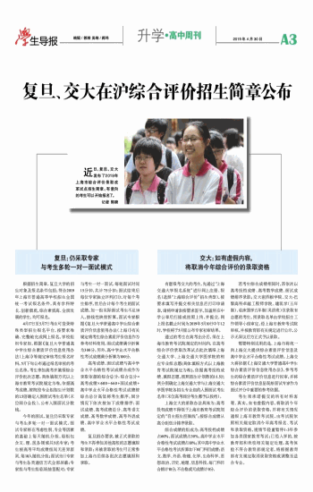 复旦、交大在沪综合评价招生简章公布