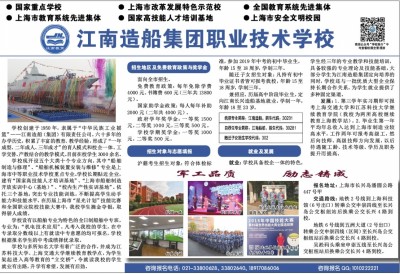 ● 国家重点学校 ● 上海市改革发展特色示范校 ● 全国教育系统先进集体 ● 上海市教育系统先进集体 ● 国家高技能人才培训基地 ●上海市安全文明校园 军工品质 励志铸成 学校创建于1950年,隶属于“中华民族工业摇篮”——江南造船(集团)有限责任公司。六十多年的办学历史,积累了丰富的教育、教学经验,形成了“一年成型、二年成人、三年成才”的育人模式和校企一体、工学交替、产教结合的教学模式。目前在校学生3000余名。 学校现开设五个大类十个专业方向。其中“船舶制造与修理”、“船舶机械装置安装与维修”专业是上海市中等职业技术学校重点专业。学校长期贴近企业,建有“国家高技能人才培训基地”、“上海市船舶制造开放实训中心(基地)”、“校内生产性实训基地”。依托三个基地,突出专业技能训练,不断提高学生动手能力和技能水平。在历届上海市“星光计划”技能比赛和全国职业院校技能大赛中,我校学生摘金夺银,取得骄人成绩。 学校设有以船舶专业为特色的全日制船舶中专班,专业为:“机电技术应用”。凡考入我校的学生,在中专录取分数线以上有就读中专意愿的均可报名,学校根据报名学生的中考成绩择优录取。 学校与多所知名大学有着广泛的合作,并成为江苏科技大学、上海交通大学继续教育教学点,为学生架起进入高等教育的“立交桥”,令就读我校的学生就业有出路,升学有希望,发展有后劲。 招生地区及免费教育政策与奖学金 面向全市招生。 免费教育政策:每年免除学费4000元、书簿费600元(三年共13800元)。 国家助学金政策:每人每年补助2000元(二年共4000元)。 政府学年奖学金:一等奖1500元,二等奖1000元,三等奖500元。 学校学期奖学金:一等奖1000元,二等奖500元。 招生对象与志愿填报 沪籍考生招生对象:符合体检标准,参加2019年中考的初中毕业生,年龄15至18周岁,学制三年。 随迁子女招生对象:凡持有初中毕业证书者皆可报考我校,年龄15至18周岁,学制三年。 兼招应、历届高中阶段毕业生,定向江南长兴造船基地就业。学制一年,年龄18至23岁。 就业及发展 就业:学校具备校企一体的特色,学生经三年的专业教学和技能培训,具备较强的专业理论及技能基础,大部分学生为江南造船集团定向培养的同时,学校还与一批优质大型企业保持长期合作关系,为学生就业提供了多种固定渠道。 发展:1.第三学年实习期即可报考上海交通大学和江苏科技大学继续教育学院(我校为两所高校继续教育上海教学站)。2.毕业生第一年平均年总收入达到上海市制造业较高水平,工作两年可报考高级工, 然后向技师、高级技师方向发展,以后待遇随工龄、技术等级、学历及职务提升而提高。 报名地址:上海市长兴岛潘圆公路447号甲 交通路线:地铁2号线到上海科技馆(6号出口)转乘公交申崇四线至长兴岛公交枢纽站后换乘公交长兴4路到校。 地铁6号线到五洲大道(2号出口)转乘公交申崇四线(区间)至长兴岛公交枢纽站后换乘公交长兴4路到校。 吴淞码头乘坐申崇五线至长兴岛公交枢纽站后换乘公交长兴4路到校。 咨询报名电话:021-33800628、33802640、18917086006 咨询报名QQ:1010222221