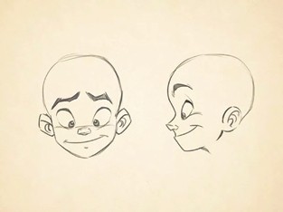 上一期为大家简单介绍了绘制不同年龄人物,需要注意不同的人体比例。本期我们来看看孩子头部、耳朵和鼻子的绘画技巧。 圆头和小小的下巴 在设计孩子头部时,最重要的技巧之一是:头部应该很大,身体却比较小,这就意味着面部骨骼没有成人头部的明显。请看下图: 应该注意的另一件事,就是下巴:儿童的下巴远不如成年人的突出,往往几乎看不见。这是因为与颅骨大小相比,儿童的颌骨自然比成人小。这样使脸部看起来更蓬松,脸颊更突出。 大额头 在网上搜索孩子头部的图片,看看他们的头部相对于下颌有多大,前额应比成人额头更大,如下图: 孩子的前额更大,他们的眼睛也应该位于成人眼睛高度线的下方:说起眼睛之间的间距,在婴儿中最为明显,但在卡通绘画中,任何年龄的儿童往往在眼睛之间有更宽的空间。这绝不是一个规则。记住,这些概念可能会根据你的绘画风格、文化等因素而有所不同。 大耳朵和小鼻子 老年人常常有非常大的耳朵和巨大的鼻子。在卡通人物中,这些特征略微加强,并为角色提供更大的视觉兴趣。儿童的一个共同特点是,他们的大耳朵也向前伸出,但鼻子很小。这种技术的使用几乎是卡通艺术家之间的一致意见。这些只是利用儿童身体自然生长过程的艺术呈现方式。
