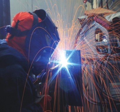 说明:焊接专业学生在焊接过程中闪光的瞬间。