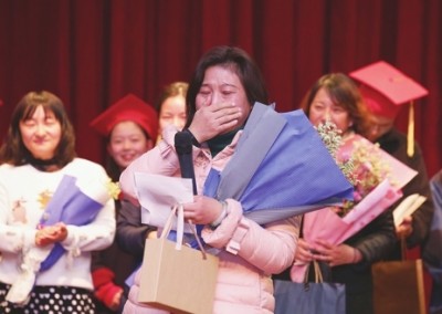 说明:在学校举行的18岁成人仪式上,同学们向老师送上感恩谢礼,老师喜极而泣的瞬间。