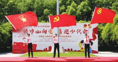 记者 陈思焙 日前,党团队三旗陆续传递至长宁和静安,少先队员们带着对市少代会满满的祝福和向上的朝气迎接。 党团队三旗传递仪式长宁专场主题活动在宋庆龄陵园举行。在仪式上,队员们一起重温了入队誓词,再次感受入队时的激动与喜悦,铭记着少先队员的光荣与使命。 长宁区红领巾理事会理事、上海市西延安中学王灿向少先队员提出倡议《学先锋爱劳动、参与环保志愿行》。活动上,娄山中学的学生带来朗诵《传承五四精神,接力青春使命》,上海市盲童学校和上海市长宁区绿苑小学的学生带来了“独唱+武术表演”节目《我爱你,中国》等。 静安区少先队“党团队三旗传递”主题活动在静安区青少年活动中心举行。在全场奏响《中国少年先锋队队歌》后,少先队员代表从长宁区少先队员的手中接过党旗、团旗、队旗,在展开的瞬间,全场少先队员高喊:“领巾心向党,喜迎少代会!” 市少工委表示,三旗传递活动的开展是为传承红色基因,突出仪式教育感召作用,让队员们牢记习近平总书记“从小学会做人 从小学习立志 从小学习创造”的嘱托。