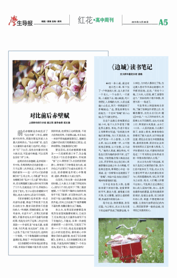 交大附中嘉定分校 浦晓 “有一条小溪,溪边有座白色小塔,塔下住了一户单独的人家。这人家只有一个老人,一个女孩子,一只黄狗。小溪流下去,绕山岨流,约三里便汇入茶峒的大河,人若过溪越小山走去,则只一里路就到了茶峒城边。”这,便是故事发生的地方,一个名叫“茶峒”的小山城,位于川湘交界处。 在这个远离尘世喧嚣的边城小村,每个人在作者笔下都是那么善良、单纯。作者介绍女主角翠翠时写道:“自然既长养她且教育她,为人天真活泼,处处俨然如一只小兽物。人又那么乖,如山头黄麂一样,从不想到残忍事情,从不发愁,从不动气。”她待人真诚,善良单纯。可是也正因为她的涉世不深,过于单纯,才致使她在情人傩送出走之后,苦苦等待,也让自己的心灵被禁锢在边城之中,令人唏嘘。可是转念想来,翠翠把心中这一份真诚、这一份痴情永远地留在了“茶峒”,何尝不是为自己找到了精神和爱情的归宿。 文中还有各色人物,也都给我留下深刻印象:宠爱翠翠的爷爷,豁达大度、重情重义的天保,仗义慷慨、诚信公道的顺顺,热诚质朴的杨马兵…… 现今社会,物欲横流,世俗泛滥。与之相比,沈从文先生笔下的边城俨然成了桃源仙境,令人神往。文中的人都淡化了钱,当过渡人想对爷爷表达谢意时,爷爷断然拒绝,还说:“我有个口粮,三斗米,七百钱,够了,谁要你这个。”类似的例子数不胜数,我便不再一一陈述了。 可是等我上网查阅相关资料,了解了故事创作背景之后,我幡然醒悟。沈先生在《长河·题记》中说:“一九三四年的冬天,我因事从北平回湘西,由沅水坐船上行、转到家乡凤凰县。去乡已十八年,一入辰河流域,什么都不同了。表面上看来,事事物物自然都有了极大进步,试仔细注意注意,便见出在变化中的堕落趋势。最明显的事,即农村社会所保有的那点正直朴素人情美,几乎快要消失无余,代替而来的却是近二十年实际社会培养成功的一种惟实惟利的人生观。” 沈从文先生笔下的边城,其实只是自己对湘西的印象,而今已经不复存在了。可是,沈从文先生意在呼吁的人性的善良美好与心灵的澄澈纯净,却让我不禁为之动容。现在,人们嘴上讲着不忘初心,可是真正还记得自己初心的人屈指可数。初心,是那些最单纯的愿望,是那些最简单的美好,是褪去金钱、权力的淳朴的心灵。希望,不要把都市的喧嚣、尘世的污浊带进自己的内心,再回到那梦一般的边城,找寻自己失落的初心。