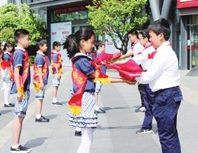 为了迎接上海市第八次少代会的召开,“领巾心向党 喜迎少代会”党团队三旗传递活动从党的诞生地——黄浦区中共一大会址出发,在全市各区传递。日前,党团队三旗传递至松江区G60科创大厦和青浦区陈云纪念馆,两区少先队员以饱满的精神迎接三旗的到来。