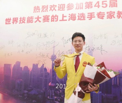在近日结束的第45届世界技能大赛中,中国代表团成绩耀眼,勇夺16枚金牌、14枚银牌、5枚铜牌和17个优胜奖。其中,上海选手斩获2枚金牌、1枚银牌、3个优胜奖。上海市杨浦职业技术学校的教师徐澳门、上海市城市建设工程学校(上海市园林学校)学生陆亦炜分别斩获车身修理项目和花艺项目金牌。 记者 徐红清 照片由受访学校提供 陆亦炜:让花成为真正主角,自信少年花开喀山 出生于2000年的陆亦炜,是个开朗阳光的上海少年。你也许想不到,这个站在花艺项目领奖台上笑脸灿烂的少年,是过敏体质。“会对一些特定植物,比如日本的蓝星花乳液过敏。”尽管这些植物并不常用,但难免会碰到,“5月份,俄罗斯邀请赛的时候,因为碰到过敏类植物,整个脚都肿了。”对此,陆亦炜却显得很淡定:“其实没有那么严重,真的喜欢了,这些都不是问题。” 聊起比赛中“惊心动魄”的时刻,陆亦炜说无疑是掐着点完成切花装饰和新娘捧花设计了。第一天的第二个任务是运用指定材料和神秘材料,完成一个切花装饰。没想到“神秘材料”是俄罗斯当地一种无法弯曲的花梗,“我的原方案是运用材料设计一个圆润的U型框架,再进行装饰。但这个材料太脆了,稍一弯曲就折了。” 时间一分一秒地过去,陆亦炜浪费了15分钟的比赛时间测试花梗的弯曲度,结果还是失败。要换方案吗?可是,在比赛中换方案是非常危险的,“很有可能时间不够,导致作品无法完成。”此时陆亦炜在脑海中疯狂“搜索”各种训练时用过的技术,终于决定运用裁剪、拼接技术,把脆弱易折的材料拼接成U型。比赛的最后一分钟,陆亦炜完成了这个作品。同样惊险的新娘捧花设计,陆亦炜也在最后两分钟内完成了作品。 从初学时“没有灵魂”的设计,到上海赛后渐渐爱上花艺,“花才是真正的主角。”陆亦炜说这句话时显现出超乎年纪的认真。他说,感谢国家、基地和师长们的不断肯定和鼓励,让他在花艺的海洋里找到了自豪感和成就感,带着这份自信和娴熟的技艺,他成功斩获金牌,花开喀山。 徐澳门:用力又用心,“陪练”站上领奖台 2015年9月,徐澳门进入上海市杨浦职业技术学校学习车身修复专业。2017年10月,在阿联酋首都阿布扎比举办的第44届世界技能大赛上,师兄杨山巍夺得金牌,这给了作为陪练的徐澳门莫大的动力和鼓舞,他希望自己可以像师兄一样,站上世界技能大赛的巅峰。 功夫不负有心人,在2018年6月举行的世赛全国选拔赛中,徐澳门以总分第一名的成绩入选车身修理项目中国集训队。 备战世赛训练的强度和难度远远大于之前的梯队训练,每天十几个小时的训练,很快让徐澳门身体有些扛不住。但徐澳门深知,训练到了关键时刻,自己不能有任何松懈,坚持跟其他队员一起参加训练。别人操作,他全程观看,发现问题跟队员一起研讨。原本就很艰苦的训练,再加上伤痛的困扰,徐澳门注定比其他选手更加勤奋努力。在最后两个月的冲刺训练中,他几乎每半天就要磨破一副防护手套。 在徐澳门原本擅长的手工件制作训练中,要求用铁锤将一块平面的钢板敲打成像小房子一样的汽车通风口形状,这不仅要求小房子的尺寸大小完全符合设计图纸,还要求铁板上凹凸处厚度均匀,不能破裂。长时间挥动铁锤敲打钢板的动作,让徐澳门的手腕疼痛难忍,但他并不满足于手工件在外形上符合要求,他还要求自己制作的手工件表面光滑,看不到粗糙的锤印。反复尝试,琢磨下锤的落点、角度、轻重及手势形成的痕迹,凭着这股子劲,他最终制作出来的手工件达到形状规则、表面光滑如镜的效果。 尽管困难重重,但徐澳门并不畏惧,他说学校有优秀的训练团队和保障团队,自己代表的不是个人,而是学校和国家的嘱托。“用力只是合格,用心才是优秀!”用力而又用心的他,最终站在了世界技能大赛的领奖台上,实现技能报国的人生理想。
