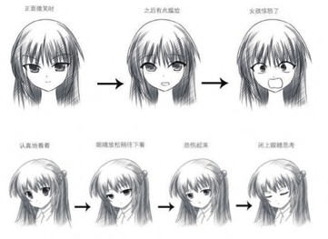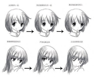 眼睛的变化体现了人物的喜、怒、哀、乐,人们能从对方眼睛当中得知其情绪变化。 人物表情怎么画?怎样才能画好人物表情?画好人物表情有哪些技巧?想必这些都是绘画初学者们比较伤脑筋的问题,那么到底怎样才能画好漫画中人物表情呢?今天我们就收集整理了关于漫画中人物表情的画法,教程非常简单,赶紧来看看: 眼睛的变化体现了人物的喜、怒、哀、乐,人们能从对方眼睛当中得知其情绪变化。在漫画中也是一样的,人物的情绪是用笔绘制出来的,而眼睛的表情变化可以把人物的情绪很好地体现出来,所以掌握眼睛表情的变化很重要。 1.4组完整的情绪变化过程 2.6种情绪变化的表现 (1)面无表情 这种表情的眼睛是最常见的。没有情绪,没有表情。 (2)犹豫/担心 注意女孩的眼睛是向别处看的,眉毛成八字。在表现人物犹豫不决、心不在焉等内心活动时,可以把眼睛描绘成向上方看。 (3)吃惊/难以置信 黑色眼球缩小了,只有在吃惊、恐慌的情况下,人的瞳孔才会缩小。在绘制人物惊慌失措的表情时,可以利用这个画法。 (4)俏皮地眨眼睛 绘制女孩子时,俏皮可爱的表情当然少不了,所以一定要在眼睛上下功夫。注意闭着的那只眼睛的位置,是根据内眼角的位置而决定,因为无论眼睛是半睁着还是眯起来,或者形状怎么变,两只眼睛的内眼角位置都处于一条直线上。 (5)眯起眼睛笑 一般情况下这种笑容属于淡淡的笑,适合性格温柔的女孩。刻画时注意完全闭起时两只眼睛的位置,是要根据比例去定位的。 (6)生气/倔强 当表示不满意、生气表情的时候,人物的眉头位置距离眼睛的位置很近,呈倒八字形,整个眼睛也变得很强势,完全没有温柔的感觉。这时候要注意嘴巴的形状,根据人物的情绪去变化。 3.侧面时眼睛的表情变化 仔细观察下面眼睛的变化,从睁眼到慢慢闭上眼睛的过程,人物的情绪也随着眼睛的变化而改变。虽然正侧面的眼睛不能完全展示出来,表情变化很难出来,但是我们可以根据眉毛的变化来判断。除此之外,还可以根据女孩头部的变化判断,我们在创作时也可以采用这种方式。 人物表情的变化是从多方面体现的,眼睛占着很重要的位置。现在自己动手尝试画一组表情变化图吧。