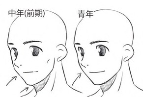 漫画人物的脸怎么画?怎样才能画好漫画人物的脸?画好漫画人物的脸有哪些技巧?怎样才能画好漫画人物不同年龄段的脸呢? 年轻人的脸部协调 年轻人指的就是高中毕业后,进入大学生或者成为社会人的这个时期,从这里往后身高就停止生长了。 头部也不会变大,唯一变化的是下巴部分。女性的下巴虽然没有什么变化,但有着个人的差异;男性的下巴变化会比较大。 和高中生的区别明显取决于“衣服”和“发型”而不是年代。一般来说,在用钱方面的递增方式一般来说是高中生<大学生<社会人这样的顺序,根据年龄调整发型,给他穿上很贵的衣服,这样一下就让人感觉到年龄。 如果可以的话,在车站等人聚集的地方观察一下,收集各种各样的信息也不错。 试着画一个青年的脸 因为这段时期几乎没有什么变化,就象征性画好一个小哥,这是一个很纤细的男生。 试着用平时自己的习惯去画出角色的五官吧。虽然比起高中生的时候,人生的经验稍微有点丰富,但是说实话,因为只是几年的不同,脸上还没有年轮的程度,这样微妙的差别是最难画的地方。 总之心中要带着人设,这个就是“他是23岁新社会人”!这么想是很重要的。 脸颊的要点 从少年变成青年的阶段,改变最大的部分就是“脸颊”。 给人一种孩子气感觉,“脸颊”就要用圆润的线条,大人则要把脸颊的线条画得稍微硬一点。即使是完全相同的脸,轮廓的差异也会有很大的变化。相反,如果这个大人想出“可爱”的感觉也有将脸颊画圆的手法。 中年(前期)人的脸部协调 中年这个年龄层的定义是模糊的。30多岁的人也被称为“青年”,但是在高中生看来,“嗯,30岁是中年人吧?”这个时候已经不可能成长了,那会发生什么呢?是的,开始衰退了。 话虽如此,30岁的人只要瞬间爆发,身体力量即将达到高峰,骨骼和肌肉没有那么大的变化,最容易看出来的就是“皮肤”。 皮肤已经渐渐失去弹性。30岁左右容易感受到的变化部分是“眼睛周围”和“脸颊”,这部分没有什么弹力,也慢慢不再紧实。 在脸部周围加上法令纹,但是如果太过明显的话就会显老了,所以要考虑到更多年龄的角色也要在作品中表现出协调性。 只看轮廓的话,会看到下巴的变化,这不是骨骼变化的,是脸颊瘦下来的重心下的状态。这是一个容易长赘肉的时期。 试着画一个中年(前期)人的脸 同上,用平时自己画画的习惯给角色画出五官。到了中年,上下的眼皮就有点下垂了。清澈的眼睛形象让人感觉年轻,改变一下眼角稍微下垂,让人有一种成熟的印象。 脸颊的要点 随着年龄的增长,上下的眼睑也会下垂,另一方面,“脸颊”上的肌肉也会变松弛,圆润的感觉渐渐消失了。过了中年,下巴的肉开始松弛,下巴的线条也会发生变化。