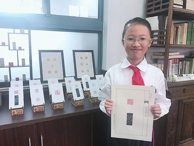 在中华人民共和国成立70周年之际,沪上各校学生献礼祖国70华诞,而一些小小“非遗传承人”则是用他们独有的技能为祖国母亲献上了一份特别的礼物。 记者 陈思焙 照片由受访者提供 “方寸之美”献礼国庆 爱在心头,刻在石上!虹口区第二中心小学的同学们为祖国送上了一份很“硬核”的礼物——自己设计、篆刻印章。“电波不逝”“薪火相传”“孺子牛”“少年强”“呐喊”……同学们篆刻的一枚枚印章不但结合了中华民族传统文化和典故,更是饱含了强烈的爱国热情。 五年级的徐依镁同学是学校走廊博物馆的“金牌”讲解员,可是她总是要回答师长们的一个问题,“你会不会篆刻?”这让只专注于演讲社团而没有学习篆刻的她觉得有些不好意思,于是她加入学校的篆刻社团开始学习。这一学就让她感受到了篆刻的魅力,“现在我在篆刻方面也取得了一些进步。”徐依镁笑着说。 今年4月底,随着“一章一典,上海史迹”篆刻艺术创作主题活动的启动,学校组织同学们了解上海市各区的历史文化建筑与革命历史故事,以篆刻为载体,通过“一章一典”,以方寸之美,向中华人民共和国成立70周年献礼。同学们实地“采风”后,在老师的指导下根据参观所感、所思、所悟,开始设计印章。徐依镁就在参观了犹太人博物馆之后,灵感乍现,设计了一方“诺亚方舟”印章。 “非遗传承人”献礼祖国 上海市北郊学校作为非遗项目传承校,则献上了丰厚的“非遗”国庆礼。传承人老师们开设了海派面塑、灯彩、精武体育、绒绣、剪纸、虎头鞋制作、撕纸、印章、棕编、中国结、五谷杂粮画等国家、市、区级非遗课程,让同学们“零距离”亲密接触中华传统文化,通过全方位、多角度的参与,产生民族自豪感和文化认同感,激发队员们内心的爱国情感。 活动结束后,同学们纷纷在背景墙上贴上自己对祖国的祝福,还有同学用秀美的书法书写下自己的爱国情怀和报效祖国的赤诚之心。