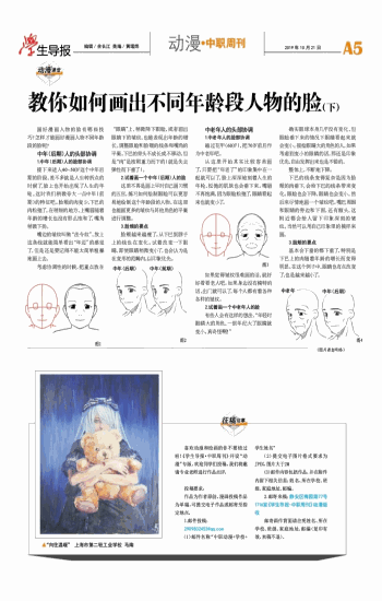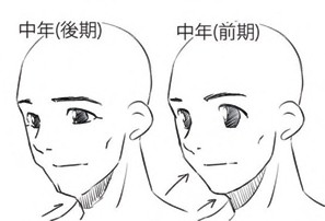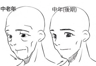 画好漫画人物的脸有哪些技巧?怎样才能画好漫画人物不同年龄段的脸呢? 中年(后期)人的头部协调 1.中年(后期)人的脸部协调 接下来进入40~50岁这个中年后期的阶段,差不多就是人生转折点的时候了,脸上也开始出现了人生的年轮。这时我们稍微夸大一点中年(前期)的特征吧。脸颊的肉变少,下巴的肉松弛了。在稍细的地方,上嘴唇随着年龄的增长也没有那么饱和了,嘴角稍微下扬。 嘴边的皱纹叫做“法令纹”,放上这条线就能简单看出“年迈”的感觉了。但是还是要记得不能太简单粗暴地画上去。 考虑协调性的时候,把重点放在“眼睛”上,稍微降下眼睑,或者画出眼睛下的皱纹,也能表现出年龄的增长。调整眼睑和脸颊的线条和嘴角的平衡。下巴的骨头不成长或不移动,但是“肉”是按照重力而下的(就是失去弹性而下垂了)。 2.试着画一个中年(后期)人的脸 这里不再是画上平时自己画习惯的五官,练习如何绘制眼睑可以更容易地绘制这个年龄段的人物。在这里也能画更多的皱纹与其他角色的平衡进行调整。 3.脸颊的要点 脸颊越来越瘦了。从下巴到脖子上的线也在变化。试着改变一下眼睛。即使眼睛稍微变小了,也会认为是在变形的范畴内,以印象优先。 中老年人的头部协调 1.中老年人的脸部协调 越过花甲(60岁),把70岁前后作为中老年吧。 从这里开始其实比较容易画了,只要把“年老了”的印象集中在一起就可以了,脸上深深地刻着人生的年轮,松弛的肌肤也会垂下来。嘴唇不再饱满,因为眼睑松弛了,眼睛看起来也就变小了。 如果觉得皱纹很难画的话,就好好看看老人吧。如果身边没有模特的话,出门就可以了,每个人都有着各种各样的皱纹。 2.试着画一个中老年人的脸 有些人会有这样的想法,“年轻时眼睛大的角色,一到年纪大了眼睛就变小,真奇怪啊!” 确实眼球本身几乎没有变化,但眼睑垂下来的情况下眼睛看起来就会变小。描绘眼睛大的角色的人,如果考虑到变小的眼睛的话,那还是印象优先,自由发挥出来也是不错的。 整体上,不断地下降。 下巴的线条变得复杂是因为脸颊的肉垂下,会给下巴的线条带来变化。眼睑也会下降,眼睛也会变小。然后来尽情地画一个皱纹吧。嘴巴周围和眼睛的旁边和下面,还有额头,这附近都会给人留下印象深刻的皱纹。当然可以用自己印象里的模样来画。 3.脸颊的要点 基本会下垂的都下垂了,特别是下巴上的肉随着年龄的增长而变得明显。在这个例子中,眼睛也有点改变了,也是越来越小了。