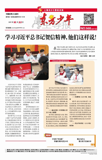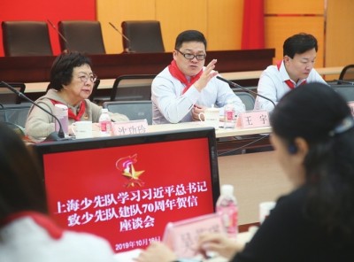 在中国少年先锋队建队70周年之际,习近平总书记向中国少年先锋队发来贺信,向为党的少年儿童事业辛勤工作的广大少先队辅导员和少先队工作者表示热烈的祝贺和诚挚的问候。贺信中,习总书记勉励新时代少先队员要热爱祖国,热爱人民,热爱中国共产党,树立远大理想,培养优良品德。 记者 陈思焙 摄影 吴恺 为及时传达学习贯彻习近平总书记致中国少年先锋队建队70周年的贺信,在贺信精神指引下进一步推进上海少先队工作,10月16日上午,上海团市委、市少工委举行学习习近平总书记致少先队建队70周年贺信座谈会,学习贺信并传达全国少工委七届五次全会精神。来自全市各区少工委双主任代表、三员代表,以及学校校长、大中队辅导员和少先队员代表参加座谈。 团市委书记王宇在会上宣读了习近平总书记的贺信,并指出贺信是对70年来少先队工作的充分肯定。随后,他回顾了近几次少先队活动,认为其生动地反映了上海少先队的历史沉淀。“从事这一份工作很光荣,确实很值得。我感触最深的是习总书记反复告诫少先队员要热爱祖国热爱人民热爱中国共产党,这一份殷殷嘱托告诉我们要坚持对少年儿童的思想政治引领,弘扬听党话跟党走的光荣传统。少先队的很多工作做好了,后续的工作才能更好做。”同时,王宇书记对如何贯彻落实贺信精神,提出了上海探索的建议。 团市委党组成员、市少工委主任、市少先队总辅导员赵国强表示:我们应该自己学深学透,通过各种途径宣讲传递,结合实际积极贯彻落实。全国少工委委员、市少工委顾问沈功玲老师表示:总书记高度评价了70年来少先队在党的领导下所取得的成就——少先队坚持了组织教育、自主教育、实践教育相统一,为党和人民事业薪火相传作出重要贡献。 少先队员代表的感悟和体会 读了习近平爷爷给少先队建队70周年的贺信,我联想起暑假里参加的在西柏坡开展的市少先队夏令营,深入了解了祖国在我们党领导下奋起的光辉历程,觉得现在的美好生活来之不易。我一定会牢记习爷爷在贺信中的嘱托,刻苦学习、努力奋斗、强健体魄、德智体美劳全面发展,做热爱祖国、热爱人民、热爱党的合格建设者和可靠接班人。 ——嘉定区第一中学附属小学 五(1)中队 葛君昊 读了贺信,我既惊喜又兴奋,深深感受到习爷爷的悉心关怀。从小学先锋,长大做先锋,我从“共和国勋章”获得者袁隆平爷爷等老一辈时代先锋身上学到了不忘初心、刻苦钻研的品质;我从阅兵式上保家卫国先锋解放军 叔叔身上学到了纪律严谨、铁骨铮铮的精神。新时代的少先队员要向这些先锋模范学习。少年强则国强,我们少先队员时刻准备着! ——华漕学校 五(5)中队 朱钱宸 建队节,我们少先队员收到了一份大大的礼物,习近平爷爷对全国少先队员深情寄语。习爷爷的贺信让我们更加明白了少先队员的初心使命。回想起今年召开的市第八次少代会,所有代表在星星火炬下庄严宣誓,作为新时代上海少先队员立志为实现中国梦时刻准备着。让胸前的红领巾见证,我们一定努力成长为能够担当民族复兴大任的时代新人。 ——民办平和学校 七(6)中队 张芯瑜