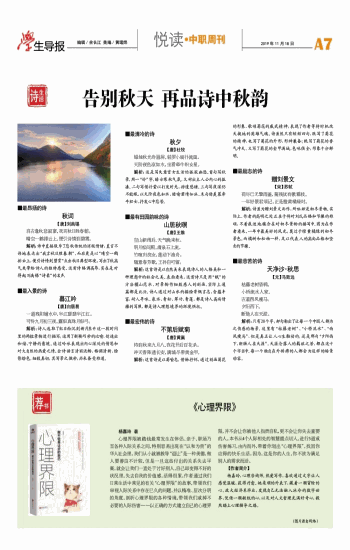 ■最昂扬的诗 秋词 【唐】刘禹锡 自古逢秋悲寂寥,我言秋日胜春朝。 晴空一鹤排云上,便引诗情到碧霄。 解析:诗中直接驳斥了悲秋传统的消极情绪,直言不讳地表达出“我言秋日胜春朝”,而后更是以“晴空一鹤排云上,便引诗情到碧霄”点出秋日典型环境,写出了秋高气爽带给诗人的独特感受。这首诗格调高昂,实在是对得起刘禹锡“诗豪”的名声。 ■最入景的诗 暮江吟 【唐】白居易 一道残阳铺水中,半江瑟瑟半江红。 可怜九月初三夜,露似真珠月似弓。 解析:诗人选取了红日西沉到新月东升这一段时间里的两组景物进行描写,运用了新颖巧妙的比喻,创造出和谐、宁静的意境。通过吟咏表现出内心深处的情思和对大自然的热爱之情。全诗语言清丽流畅,格调清新,绘影绘色,细致真切,其写景之微妙,历来备受称道。 ■最清冷的诗 秋夕 【唐】杜牧 银烛秋光冷画屏,轻罗小扇扑流萤。 天阶夜色凉如水,坐看牵牛织女星。 解析:这是写失意宫女生活的孤寂幽怨。首句写秋景,用一“冷”字,暗示寒秋气氛,又衬出主人公内心的孤凄。二句写借扑萤以打发时光,排遣愁绪。三句写夜深仍不能眠,以天阶夜色如水,暗喻君情如冰。末句借羡慕牵牛织女,抒发心中悲苦。 ■最有田园韵味的诗 山居秋暝 【唐】王维 空山新雨后,天气晚来秋。 明月松间照,清泉石上流。 竹喧归浣女,莲动下渔舟。 随意春芳歇,王孙自可留。 解析:这首诗是以自然美来表现诗人的人格美和一种理想中的社会之美。表面看来,这首诗只是用“赋”的方法模山范水,对景物作细致感人的刻画,实际上通篇都是比兴。诗人通过对山水的描绘寄慨言志,含蕴丰富,耐人寻味。泉水、青松、翠竹、青莲,都是诗人高尚情操的写照,都是诗人理想境界的环境烘托。 ■最宏伟的诗 不第后赋菊 【唐】黄巢 待到秋来九月八,我花开后百花杀。 冲天香阵透长安,满城尽带黄金甲。 解析:这首诗是以菊喻志,借物抒怀,通过刻画菊花的形象、歌颂菊花的威武精神,表现了作者等待时机改天换地的英雄气魄。诗虽然只有短短四句,既写了菊花的精神,也写了菊花的外形,形神兼备;既写了菊花的香气冲天,又写了菊花的金甲满城,色味俱全,形象十分鲜明。 ■最励志的诗 赠刘景文 【宋】苏轼 荷尽已无擎雨盖,菊残犹有傲霜枝。 一年好景君须记,正是橙黄橘绿时。 解析:诗虽为赠刘景文而作,所咏却是初冬景物。实际上,作者的高明之处正在于将对刘氏品格和节操的称颂,不着痕迹地糅合在对初冬景物的描写中。因为在作者看来,一年中最美好的风光,莫过于橙黄橘绿的初冬景色。而橘树和松柏一样,足以代表人的高尚品格和坚贞的节操。 ■最悲苦的诗 天净沙·秋思 【元】马致远 枯藤老树昏鸦, 小桥流水人家, 古道西风瘦马。 夕阳西下, 断肠人在天涯。 解析:只有28个字,却勾勒出了让每一个中国人都为之伤感的场景。这里有“枯藤老树”、“小桥流水”、“西风瘦马”,但是真正让人心生触动的,还是那句“夕阳西下,断肠人在天涯”。天涯沦落人的羁旅之苦,都在这十个字当中。每一个独自在外拼搏的人都会为这样的场景动容。