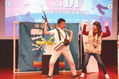 奇思妙想大创意,为期两天的2019-2020 DI上海青少年创新思维竞赛在普陀区同济二附中鸣锣开赛。这项被纳入学生综合素质评价的赛事,吸引了来自全市16个区,幼儿园、小学、初中、高中、大学的288支赛队同台竞技,比拼创意、展示团队协作及解决问题的能力。作为今年的DI主赛场,普陀区共派出67支赛队参赛。上海市普陀区青少年中心、金鹤中学、民办永昌中学等队伍获得大奖,60多支队伍晋级全国赛。DI连年创新高,魅力究竟何在? 记者 朱筱丽 独一无二的解决方案是制胜法宝 DI是一个体现动手动脑相结合、科技与艺术相结合、自然科学与社会相结合的教育项目,通过竞赛可以使学生们的素养得到全面提升。DI由团队挑战+即时挑战两部分组成,五大类团队挑战各有侧重点,参赛队员需要根据赛题要求,表演一个八分钟的短剧,同时需要融合道具进行展示。 今年的团队挑战赛题相较往年呈现出了全新的挑战难度与新意。“观赏性强”、“贴近生活”成了赛题关键词。在赛场上,参赛学生用创意诠释赛题,各种奇思妙想、打破常规的解决方案纷纷涌现,令人刮目相看。 作为东道主的同济二附中此次共派出3支队伍,分别参加挑战A、挑战C和挑战D。领队李晓亮老师介绍说,他们初次尝试DI,研究赛题、制作背景、即时挑战训练都由学生完成。李老师说,学生们很刻苦,赛前的两天都是晚上八点回家。幸运青睐努力的人,该校一举获得两个大奖,李老师用“难以置信”来形容他们的获奖心情。 视觉冲击力超强 金鹤中学夺魁 同样是参与挑战C的金鹤中学成了同济二附中的竞争者。他们带来的是一个海洋环保故事:一只年老的海龟被渔网缠住,它的朋友小海星想找伙伴来救它,却被奇怪的吸引力困在了这个区域,这时科考队员们利用探测车的力量解救了海龟,接着利用最新“武器”引出了作恶的变异章鱼,与之交流后发现章鱼的变异是因为人类在海底扔的垃圾。 在赛场上,队员们发射的许多信号灯是用LED灯做的,信号发射器发出的光芒轨迹就像长时间曝光一样将海底洋流的轨迹显现了出来,画面逼真,视觉冲击力极强。 领队老师沈文斌记录了DI给学生们带来的变化,“学生去了解了蠵龟这一濒危物种的生存现状,对于环保有了更深层次的理解。”沈老师认为,比赛最终呈现的结果并不是最重要的,最重要的是学生有明确的目标,知道努力的方向,虽然前进的过程中会遇到许多问题,但恰恰是这一个一个问题的解决提升了学生的综合素养及能力,这才是DI应该并且已经带给学生的内容。 新军成了黑马 最后冲刺成功 来自普陀区青少年中心初中组的“思无止境”队这次非常意外地拿到了挑战A第三名和文艺复兴奖,这个特别大奖令大家倍感意外。赛前,他们经历了一个小周折,原本选择挑战B最终选择了挑战A,剧本重写、道具重做,一切归零。队长张逸雯在接受采访时说道,“从最后结果看,我们团队在这个执行过程中,体现了非常强的执行力和调整能力。”从背景板、音效到服装,一切从零开始,他们却说:“效率比之前更高了。” 张逸雯在小学时就参加过DI,这次比赛还找出了小学时参赛的自制演出服,“很喜欢DI,一直念念不忘。” 友好队:来自西藏亚东的参赛队 在赛场上,有一支队伍特别引人关注,他们是来自雪域高原西藏亚东县中学的学生。学生白玛卓嘎表示,自己是第一次参加这么大规模的赛事,通过扮演角色了解到演员背后的鲜亮与艰辛;学生白玛央宗是第三次来上海,她说这次感受特别不一样,“看到上海的精神面貌、看到上海学生的创新能力,促进自己要多学习。”校长达瓦罗布看到学生们有如此多的感触特别欣慰,他说今年受邀来到上海参赛的共有9位学生,都是学校品学兼优的好学生,通过“走出来”,学生们学会了自省与观察,在心眼里装满“创意”后带回家乡,与同学们分享这些收获与快乐。让更多的学生拥有DI精神与解决问题的能力,正是此行的初衷。 DI情,聚是一团火,散是满天星 DI是全年龄段参与的教育项目,从幼儿园萌娃到青春少年均可参与,其包容性、多样性可见一斑。今年活跃在赛场上的还有两支大学生队伍,在高中时代他们就与DI结缘了。 东华大学“上一个队”今年选择考验即兴表演能力的挑战D,队长陶文豪是张老面孔,他在高中期间就参加过DI。参与DI变成了一种不能割舍的情愫。赛前,队友还相聚为他庆祝生日。他说收获的不仅是一种DI精神,还收获了一段段友谊。 聚是一团火,散是满天星。今年,来自世界各地的“校友们”纷纷发来视频祝福DI新秀们。DI,俨然成了桥梁与纽带。 老队员们对DI的热情不变,新队员们对DI的憧憬不变。也许只有参与过DI的校友才能明白DI的魅力所在。
