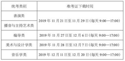 记者 余长江 2020年上海市普通高校招生艺术类专业统一考试将于2019年11月底开始。艺术类专业统考准考证由考生本人自行网上下载,已在网上报名参加本市美术与设计学类、音乐学类、编导类、表演类、播音与主持艺术类专业统考并完成网上付费的考生须登录上海市教育考试院“上海招考热线”网站(www.shmeea.edu.cn),点击首页下方的“考试报名”栏目进入,下载并打印本人艺术类专业统考准考证,具体时间安排如下: 请考生务必在以上规定的时间段内自行登录“上海招考热线”网站下载打印准考证并妥善保管。准考证不需彩色打印,黑白打印即可。准考证使用期间正反面不得书写、涂改。 考试当天,考生须携带本人统考准考证和有效证件(含居民身份证、有照片的社保卡、驾驶证、护照、军人证)入场验证并按规定时间参加考试,两证缺一不得参加考试。