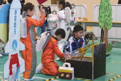 穿着可爱的服装、扮演着各式各样的角色、开启一场探索外太空之旅……在不久前圆满落幕的2019-2020 DI上海青少年创新思维竞赛中,除了紧张的创意比拼,还有这样一群“萌”力十足的明日之星赢得全场瞩目。 明日之星作为DI非竞赛级别项目,主要为4-7岁的学生提供简单的创意体验平台,并给他们一个结交新朋友的机会。明日之星项目于去年落沪,今年参赛队伍数猛增至33支。今年,萌娃们要讲述一个探索外太空的故事。参赛队员每人都需要扮演一个角色,团队需要制作一个发射装置、设计一个布景,同时还有一个可以人为操控的木偶作为第八个伙伴加入探索计划。 记者 陈思焙 受访者供图 收获背后的虚惊一场 在民办打一外国语小学梦想之队的短剧中,宇航员在出发去火星探索生命迹象时,遭遇到虫洞,来到了5亿年前的火星。在那里,宇航员们意外地发现了一个“探索机器人”,并在它的指引下,找到了火星生命的种子,最后用地球上的水成功救活了种子。梦想之队通过这个故事告诉大家:地球上的水资源是多么的宝贵,要珍惜每一滴水! 表演顺利结束后,王安然同学正在为队伍的表现窃喜时,听到有人说“火箭没有发射到幕布上,发射失败了”,一下子紧张了起来。最后通过妈妈录下的视频,反复确认之后,发现只是虚惊一场,所有火箭都发射成功了。最后,他们凭借优秀表现荣获了第一名。同学们通过这次活动,不但学到了平时课堂中学不到的知识和经验,还与队友们建立了默契的配合,团队合作意识越来越强。 神话与科幻的碰撞 当中国神话故事与科幻故事碰撞,会有怎样的火花呢?浦东新区逸夫小学的“海之韵律”小队就讲述了一个科幻版“嫦娥奔月”的故事:有一天,嫦娥被坏人抓到月球,宇航员用火箭帮助后羿来到月球寻找嫦娥,却发现了坏人竟然是玉兔。嫦娥为了不让玉兔破坏月球,决定留在月球。 除了富有创意的故事,以广寒宫为灵感设计的背景板,更是令现场的观众叹为观止。同学们在领队老师和家长的帮助下,将现代的知识和传统故事融合,用心制作出了这个精美的背景板:凡·高风格的太空、以沙子为基底的月亮、用纽扣缝制的屋顶……