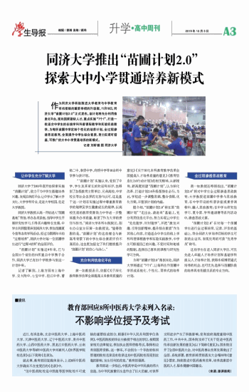 同济大学推出“苗圃计划2.0”探索大中小学贯通培养新模式