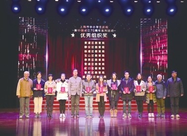 向祖国致敬,向英烈和祖国建设者致敬,做好新时代接班人!近日,“2019,向祖国致敬”上海市中小学生庆祝新中国成立70周年系列活动表彰大会在普陀区青少年中心举行。全市获奖师生代表300余人出席。 记者 郭漪 摄影 施培琦 “大国工匠”亲临表彰大会 据了解,上海市中小学生庆祝新中国成立70周年系列活动包括六大板块:“看•荐”中国——研学实践纪实、“漫•游”中国——国风动漫大展、“诗•绎”中国——诗文赏析诵读、“博•览”中国——小少年宣讲团、“礼•赞”中国——观影微语征集、“志•汇”中国——主题征文活动。据不完全统计,系列活动覆盖全市16个区近600所中小学校、中职校学生,13万人次参与。 表彰大会现场,主办方特别邀请来了“大国工匠”王伟,作为中国自主制造的大飞机C919的制造者、中国商飞上海飞机制造有限公司钣金车间钣金七组组长,王伟讲述了他如何凭借过人的技艺,挑战别人眼中的“不可能”,实现从小的航空梦想的故事。2014年,王伟用精湛的技术在短时间内成功为C919大型客机首架机一处长达3米的大尺寸变厚度蒙皮校形,加工误差在0.25毫米以内,只相当于四根头发丝的直径。 在学习中感知祖国发展历程 据悉,系列活动于6月启动,在暑期全面展开,同学们经过预热学习、研学实践、作品创作、成果展示四个阶段,收获了丰硕的成果。 其中,《学生导报》推出的2019暑期主题专刊学习资料包深受欢迎,共和国英烈和建设者的感人故事,爱国经典影片介绍,爱国主义教育基地和中国近、现代诗词……阅读专刊,为系列活动正式展开营造浓厚氛围。 在此基础上,同学们开展各种研学实践活动,如走进爱国主义教育基地寻访英烈事迹——在龙华烈士纪念馆等爱国主义教育基地,同学们在参观后担任纪念馆小讲解员、进行课本剧创作等,在自编、自导、自演的过程中,用课本剧的形式传承红色基因,展现了青少年对祖国的热爱、对历史的思考和对理想的追求。 同学们还通过“劳模工匠进校园”、“院士进校园”等活动对话劳模、工匠、院士等;或对身边普通劳动者进行访谈,从中感悟国家的发展历程,并进行了摄影、短视频、四格漫画、观影留言和征文等创作,以此记录和分享寻访历程、所思所感。 ■成果展示 ◇◇在“礼•赞”中国——观影微语征集活动中,公众号后台共收到留言10000余条,互动点赞数超16000次,参与学生超过45000人次;除了主办方推荐的31部国产优秀纪录片以外,同学们在留言中,也为大家推荐了他们觉得好的纪录片,如《900天!900秒!》、《开天辟地》等。 在留言中,记者看到学生和祖辈、父辈的互动:“我的外公和祖国同龄,今年70岁了!他是和中华人民共和国一起成长起来的。”爷孙俩一起观看《开国大典》,感慨祖国的强盛伴随着个人的成长。“和爸爸妈妈一起观看了《周恩来》,理解了他们心目中永远的总理。我会永远记住:为中华之崛起而读书!”学生从榜样人物身上汲取奋斗的力量也让记者动容。 ◇◇在“漫•游”中国——国风动漫大展的作品中,同学们的动漫作品既有为中华人民共和国成立献身的革命英雄,如董存瑞、江姐;也有为祖国发展做出贡献的建设者,如杂交水稻之父袁隆平、发明500米口径球面射电望远镜的南仁东、女排精神的代表者郎平等;还有平凡的身边人,如小区里做垃圾分类志愿者的阿姨。 ◇◇“带着少年的意气风发,带着一腔豪情壮志来和更好的自己相见,因为这一切都会值得。”“70年后的我们也会追随前人的步伐,用青春与激情为中国航海事业助力。”这些意气奋发的文字,都是来自于“志•汇”中国——主题征文活动的得奖作品,从中可以看到,同学们将青春梦和中国梦紧紧相连,将个人梦想融合在爱国梦想中。 ◇◇“诗•绎”中国——诗文赏析诵读活动则吸引了百余所中小学(中职校)的50000多位学生踊跃参与。“活动能够激发青少年对于理想主义的热爱。”诗文赏析诵读活动的专家顾问、复旦五浦汇实验学校校长黄玉峰老师表示,参加诗文赏析诵读活动,对于青少年是非常有益的。看到祖国大好河山时,名诗佳句自然而然地跳出来,是非常美好的事情。