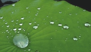 荷叶叶面具有极强的疏水性;水滴落在荷叶上,会变成一个个自由滚动的水珠,而水珠的滚动会把落在叶面上的尘土污泥吸附掉滚出叶面,使叶面始终保持干净。 这种疏水性与荷叶表面的微观结构有关。在荷叶叶面上存在着非常复杂的多重纳米和微米级的超微结构。在超高分辨率显微镜下可以清晰看到,荷叶表面上有许多微小的乳突。乳突的平均大小约为10微米,平均间距约12微米。而每个乳突由许多直径为200纳米左右的突起组成。突起的上面长满绒毛,使得尺寸比它大的东西根本无法靠近叶面。这种微-纳双尺度结构就是菏叶不沾水的原因了。荷叶不沾水的这一特性也启发了人们发明了伞,所以如果下雨天可以试试用荷叶挡雨,也会别有一番趣味哦。