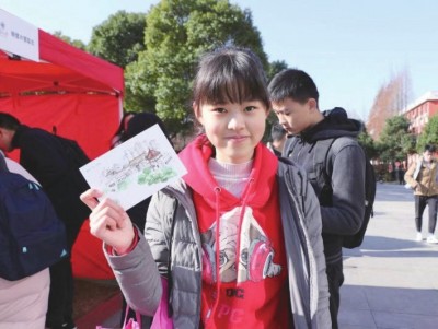 与此同时,在光华楼前的草坪,整齐的摊位仿佛一片红色的海洋,在略显萧瑟的冬日,点燃着梦想的火种,这里是同学们打卡、投递明信片的地方。