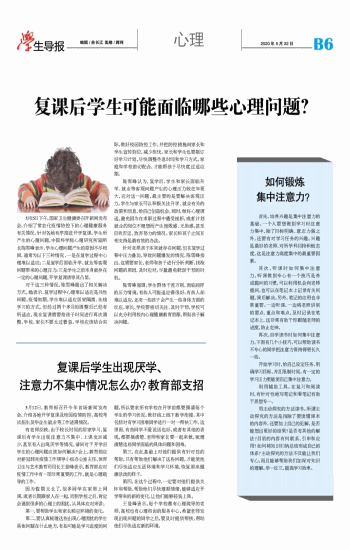 复课后学生出现厌学、注意力不集中情况怎么办?教育部支招