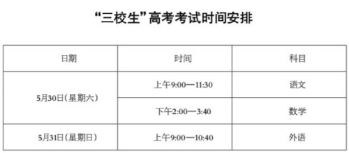 2020年上海市普通高等学校面向应届中等职业学校毕业生招生统一文化考试(俗称“三校生”高考)将于5月30日、31日举行。上海市教育考试院日前发布“三校生”高考考试注意事项。特别提醒大家,考生在参加首场考试时,需携带《安全承诺书》进入考点。 1.考生须于5月16日前自行下载《2020年上海市普通高等学校面向应届中等职业学校毕业生招生统一文化考试考生安全承诺书》,按照要求如实、完整填写考前14天相关信息并签署承诺书。考生在参加首场考试时,需携带承诺书进入考点,并在进入考场时主动交予监考员。如考前14天有体温超过37.3°C等症状(含虽无其他症状,但平时基础体温高于37.3°C者),考生须提前自行前往新冠病毒核酸检测定点医院进行检测,并于考试当日携带核酸检测报告,经现场检查后方可进入考点参加考试。 2.考生须凭准考证[5月26日至31日登录上海市教育考试院“上海招考热线”网站自行下载打印]和本人有效证件进入考场。准考证正、反两面在使用期间均不得涂改或书写。有效证件含居民身份证、有照片的社保卡、驾驶证、护照、军人证。 3.提早出行,切勿迟到。 (1)考生应充分考虑交通、天气等因素,提早出行,避开高峰,避免迟到。建议考生提前至少45分钟抵达考点,并接受考点各项防疫安全检查。 (2)语文、数学科目考试,迟到15分钟者不得进入考点考试。外语科目考试,8:30起考生开始进入考场,8:45禁止考生入场,8:50开始试听,9:00正式开始考试。考生交卷离场时间不得早于每科考试结束前30分钟。 4.英语科目听力考试,考生须自备带有耳机并能正常收听的收音机,听力考试收听频率:FM(调频)89.9兆赫、AM(中波)792千赫;德语科目听力考试采用CD光盘播放的形式进行;日语科目不设听力考试。 5.所有科目采用网上评卷方式,考生须在专用网评答题纸上答题。考生应在指定位置和规定的时间内准确、清楚地填写考生本人姓名、准考证号,网上评卷科目须正确粘贴条形码。凡因答题纸上漏填、错填、字迹不清或错误粘贴条形码影响评卷的,责任由考生自负。 6.网评科目客观题部分考生须使用2B铅笔填涂,涂点要规范;主观题部分须使用黑色字迹的钢笔、圆珠笔或签字笔答题。 7.考生须在答题纸规定区域内答题,答案书写在试题册或草稿纸上无效。不得在答题纸上做任何标记。 8.严禁携带各种通信工具(如手机、智能手表、智能手环等具有发送或者接收信息功能的设备等)、有电子存储记忆功能的计算器和录放设备以及涂改液、修正带等物品进入考场。 9.请广大考生自觉遵守考场规则,诚信考试,营造良好的考试氛围。考生如不遵守考场规则,不服从考试工作人员管理,有违纪、作弊行为的,教育考试机构将按照《中华人民共和国教育法》以及《国家教育考试违规处理办法》(教育部令第33号)等进行处理,并将记入国家教育考试诚信档案;涉嫌违法的,由考点或教育考试机构移送当地公安机关,按照《中华人民共和国刑法修正案(九)》及有关法规进行处理。