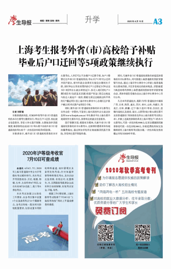 上海考生报考外省(市)高校给予补贴 毕业后户口迁回等5项政策继续执行