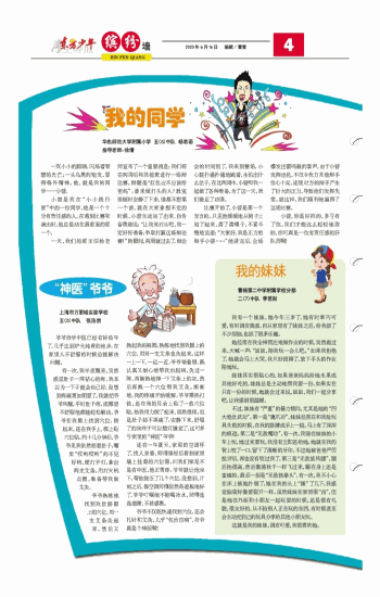 曹杨第二中学附属学校分部二(7)中队 李若彤 我有一个妹妹,她今年三岁了,她有时乖巧可爱,有时调皮捣蛋,自从家里有了妹妹之后,给我添了不少烦恼,也添了很多乐趣。 她经常在我全神贯注地做作业的时候,突然跑过来,大喊一声:“姐姐,陪我玩一会儿吧。”如果我拒绝了,她就会马上大哭,我只好投降了,放下手头的作业陪她玩。 妹妹其实很贴心的,如果爸爸妈妈给她水果或其他好吃的,妹妹总是主动地帮我要一份,如果实在只有一份的时候,她就会过来说,姐姐,我们一起分享吧,让我感到很温暖。 不过,妹妹有“严重”的暴力倾向,尤其是她的“四大绝世武功”。第一是“鹰爪功”,妹妹经常在和我抢玩具失败的时候,在我的胳膊或手上一掐,马上有了深深的痕迹。第二是“无敌嘴功”,有一次,我骑在妹妹的小车上玩,她过来要玩,我没有立即还给她,她就在我的背上咬了一口,留下了清晰的牙印,不过她被爸爸严厉批评后,再也没有咬过我了。第三是“无敌旋风腿”,腿后抬很高,然后像荡秋千一样飞过来,踢在身上还是蛮痛的。最后一招是“无敌铁拳头”,有一次,我不小心在床上被她扑倒了,她在我的头上“捶”了几下,我感觉脑袋好像要裂开一样。虽然妹妹在家里很“凶”,但是她在外面和小朋友一起玩耍的时候,还是很有礼貌,很友好的,从不抢别人正在玩的东西,有时候甚至会主动把自己的玩具分享给其他小朋友玩。 这就是我的妹妹,调皮可爱,我很喜欢她。