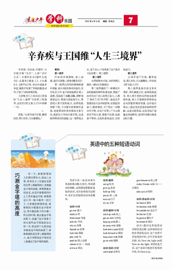 辛弃疾,字幼安,号稼轩,与苏轼并称“苏辛”,人称“词中之龙”。主要作品为《稼轩长短句》,名篇有《摸鱼儿》、《永遇乐》、《清平乐》等。宋词中成就卓异者,继承并发展了苏轼的豪放词风,开拓了词的表现范围。 王国维在《人间词话》里指的“人生三境界”中的第三种境界,出自其《青玉案·元夕》中的哪一句()。 答案:“众里寻他千百度,蓦然回首,那人却在,灯火阑珊处。” 解析: 第一境界 昨夜西风凋碧树,独上高楼,望尽天涯路。(晏殊《蝶恋花》) 第一境界以西风刮得绿树落叶凋谢,表示当前形势相当恶劣,但在乱世之中,也只有他能真正爬上高楼,居高临下高瞻远瞩,清晰地看到远方,看到天涯海角尽头,看到别人看不到的地方。说明他能排除干扰,不为暂时的烟雾所迷惑。他能看到形势发展的主要方向,能抓住斗争的主要矛盾。这是能取得成功的基础。这一境界是立志、是下决心,只有具备了这个条件才会有第二、第三境界。 第二境界 衣带渐宽终不悔,为伊消得人憔悴。(柳永《凤栖梧》) 第二境界概括了一种锲而不舍的坚毅性格和执着态度,描述了如何为此下决心而努力奋斗。人瘦了、憔悴了,但“终不悔”。就是说尽管遇到各式各样的困难,还要坚持奋斗,继续前进,为了事业一切都在所不惜。在这个世界上干什么都没有平坦大道,要敢于创新,也要善于等待。这是执着地追求,忘我地奋斗。 第三境界 众里寻他千百度,蓦然回首,那人却在,灯火阑珊处。(辛弃疾《青玉案·元夕》) 第三境界是指在经过多次周折、多次磨练之后,逐渐成熟起来,别人看不到的东西他也能明察秋毫,别人不理解的事物他也会突然豁然领悟贯通。这时他在事业上就会有创造性的独特的贡献。这是功到事成。这是用血汗浇灌出来的鲜花,是用毕生精力铸造出的大厦。
