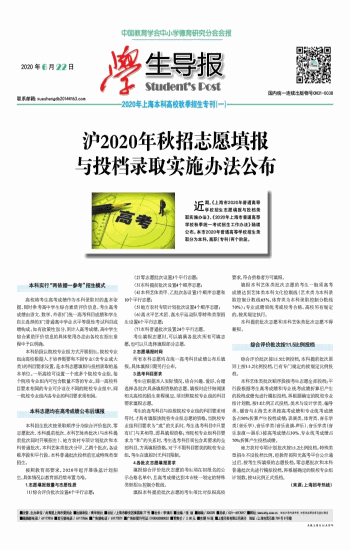 沪2020年秋招志愿填报与投档录取实施办法公布