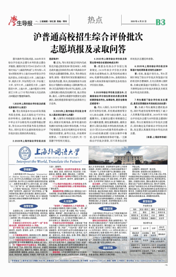 沪普通高校招生综合评价批次志愿填报及录取问答